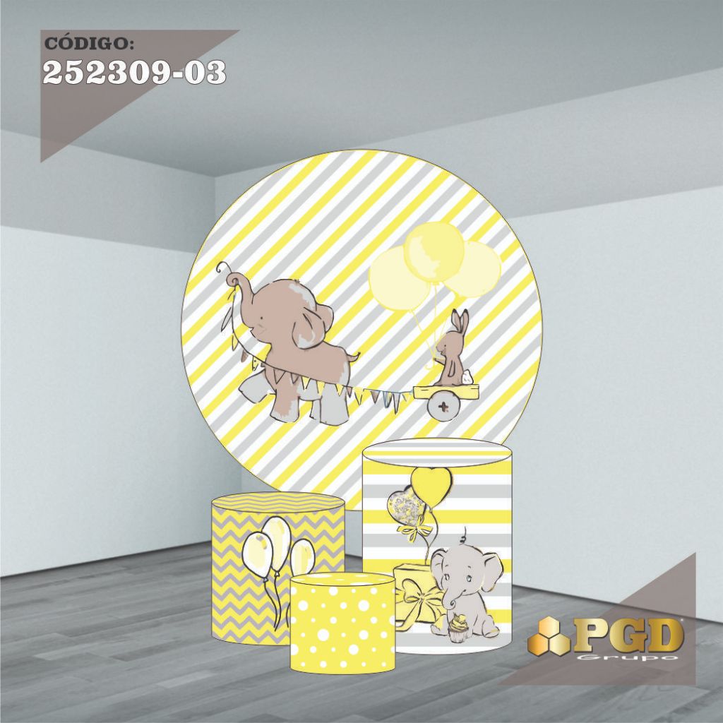 Capas de painel redondo, trio de capas veste fácil, tema ELEFANTE Sublimado decoração de aniversário