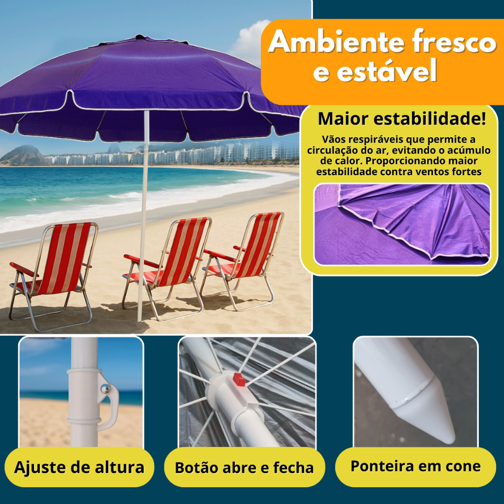 Guarda Sol Gigante 2,40m Uv Praia Piscina Respirável Verão Camping Incliável Reforçado Família Churrasco