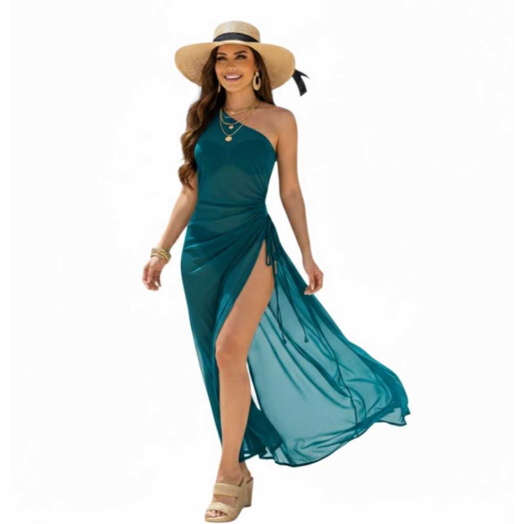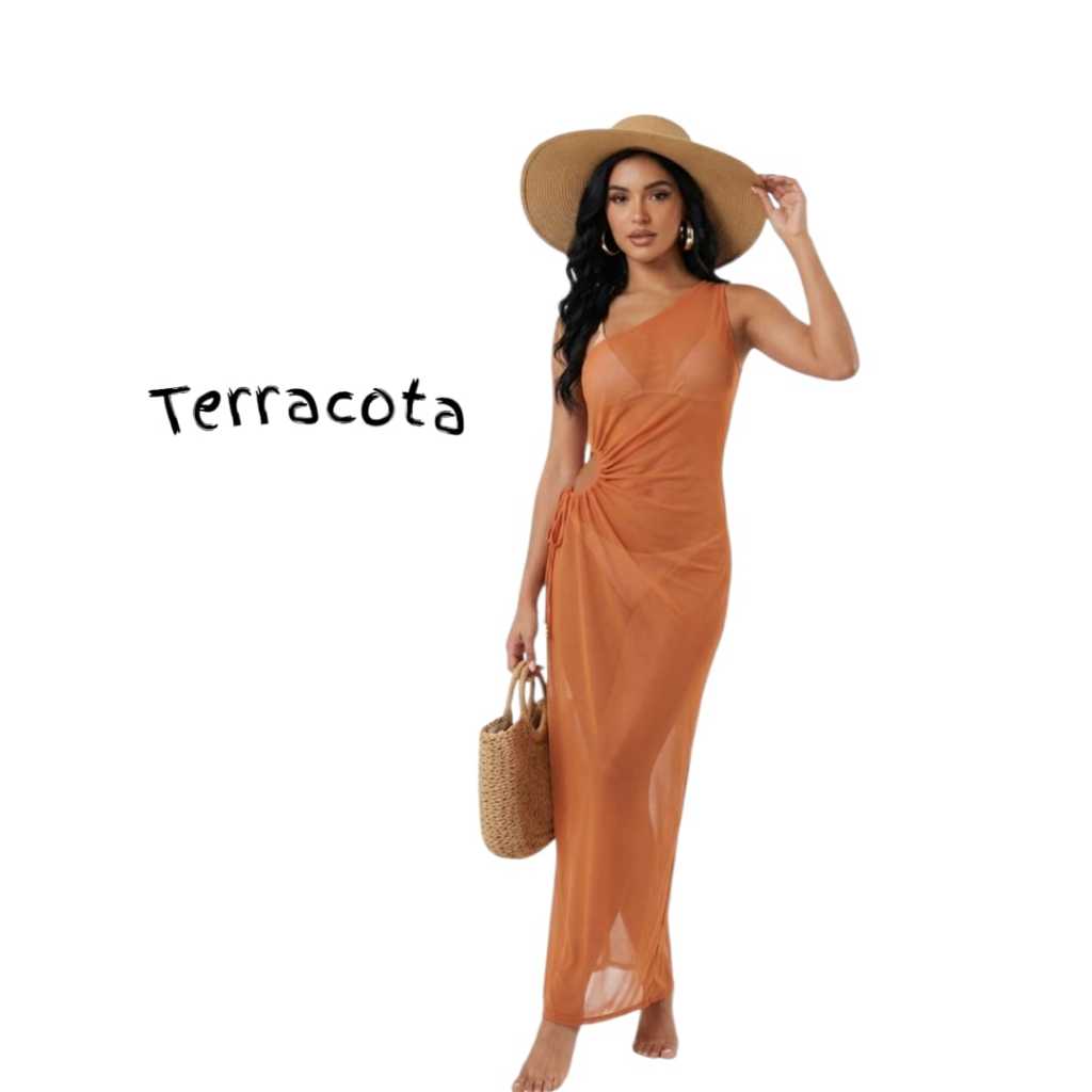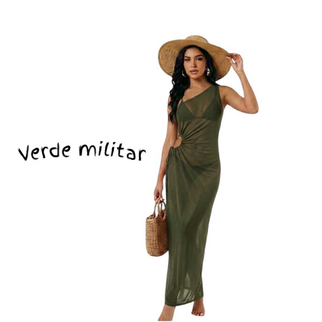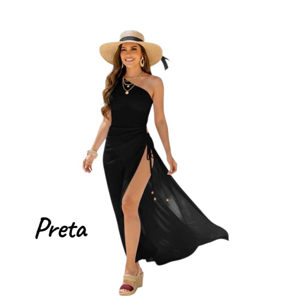 saída de praia transparente feminina canca mula manca um ombro só tendencia verão tamanho único veste do 36- 42 longa
