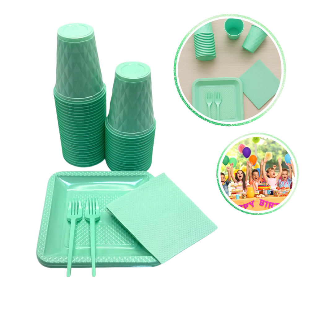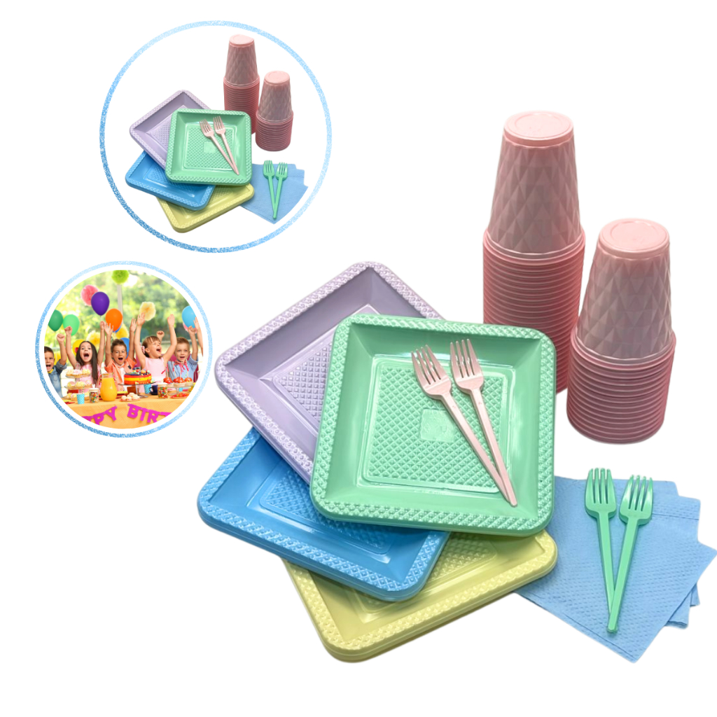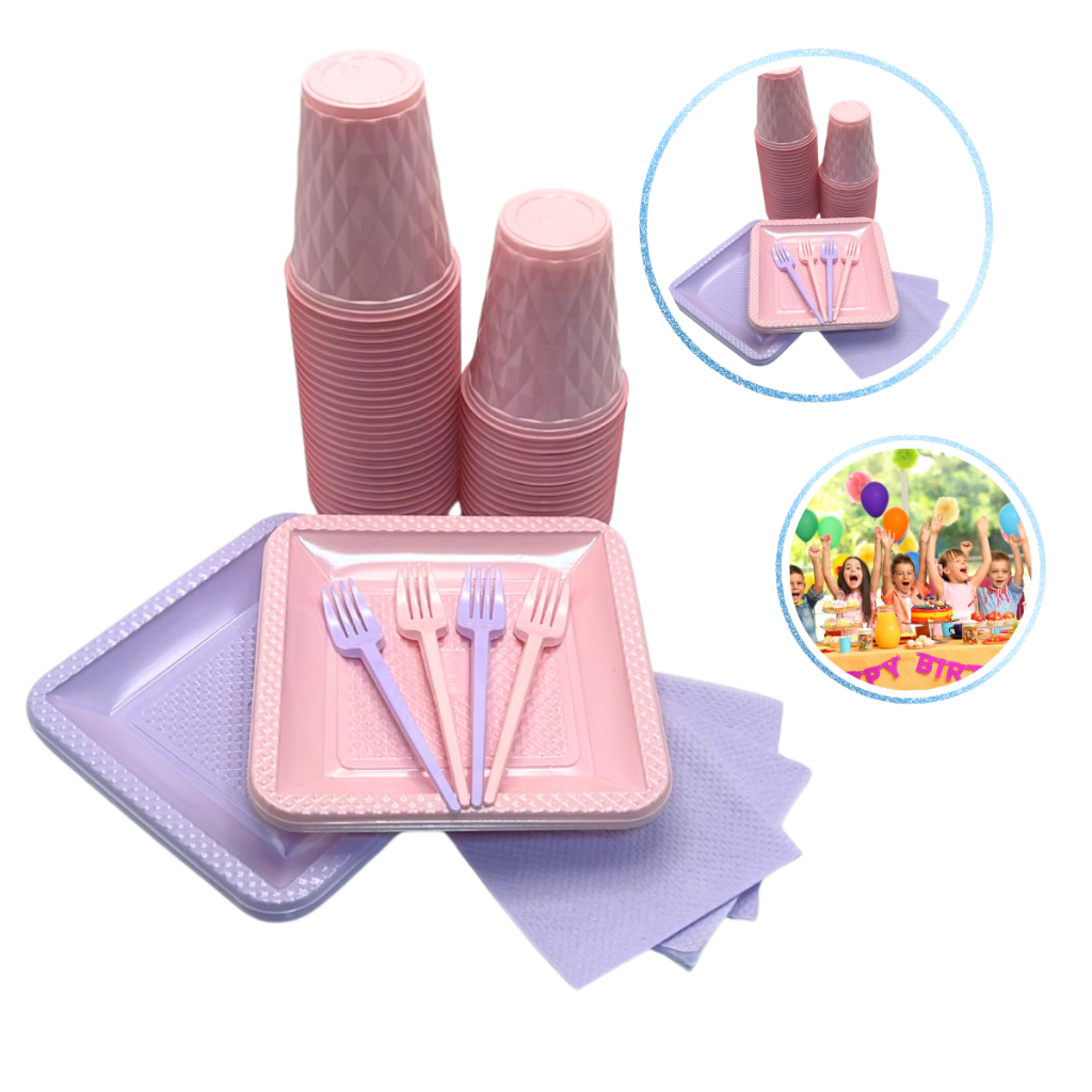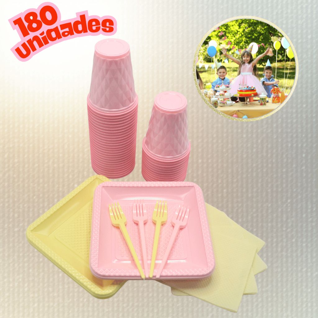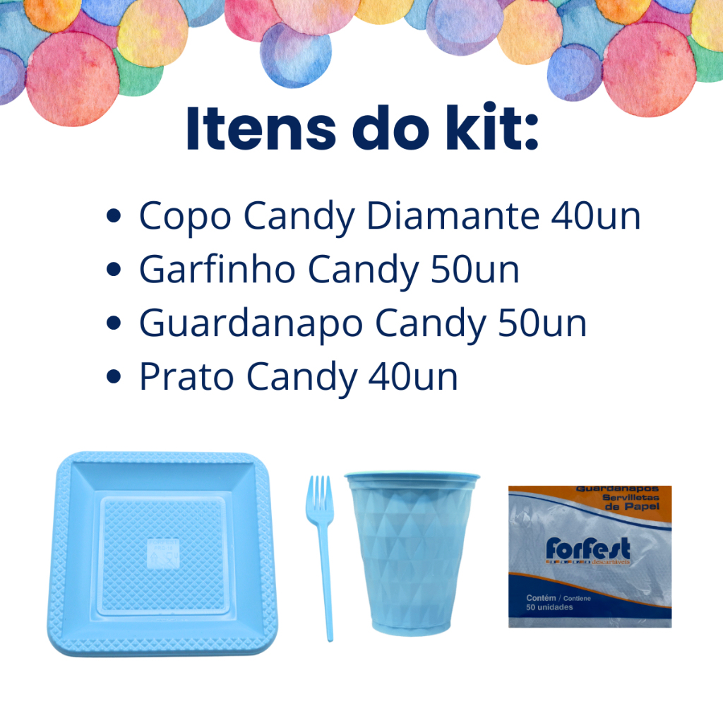 Kit 180 Itens Festa Aniversário Candy Completo Descartável Diamante C/Prato Copo Garfinho Guardanapo