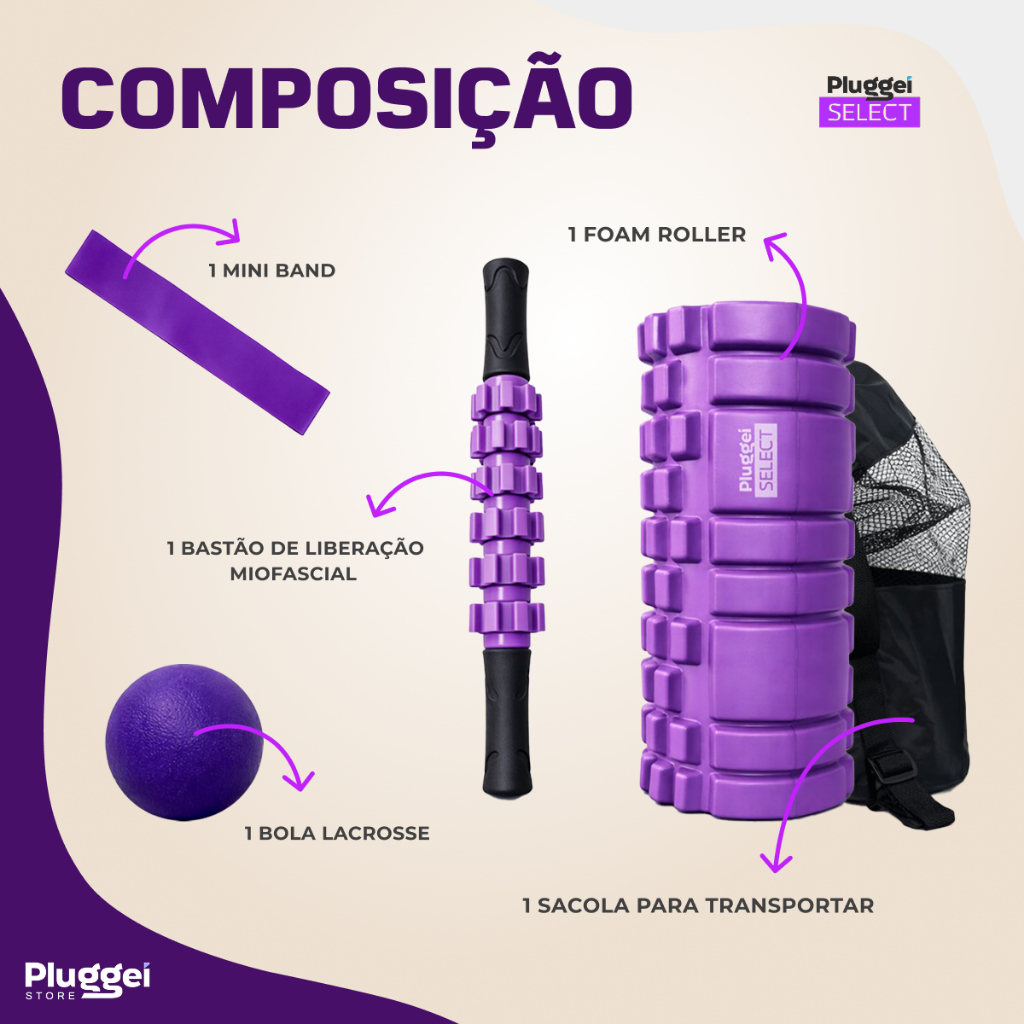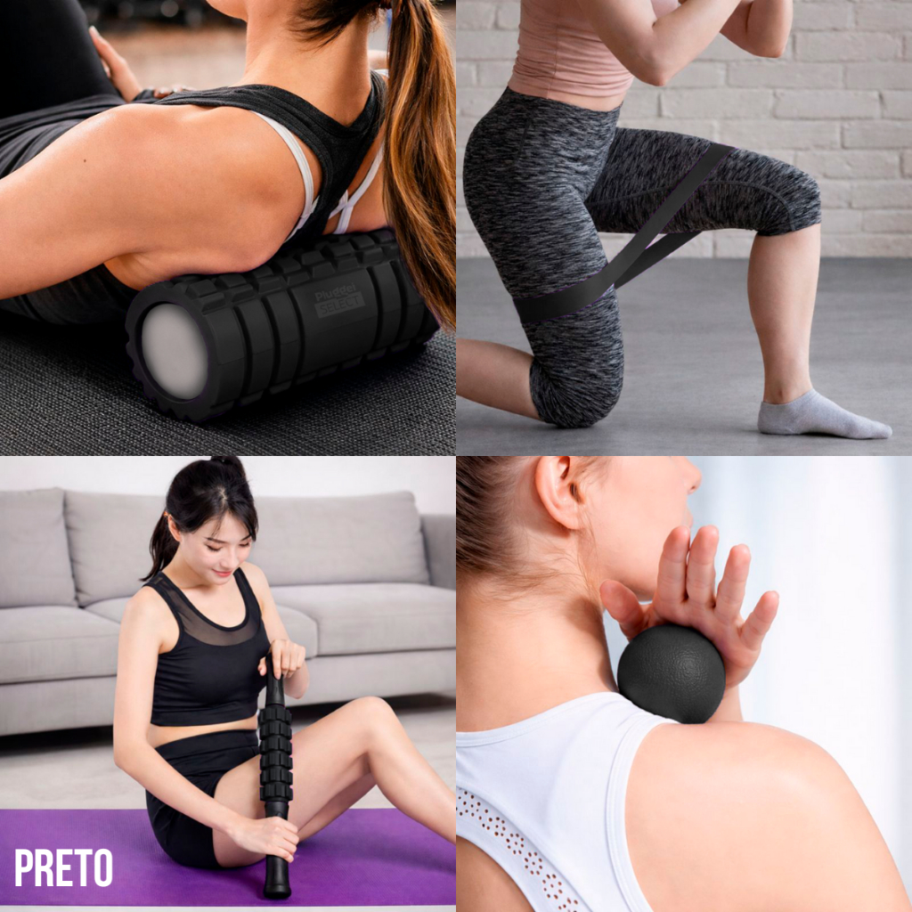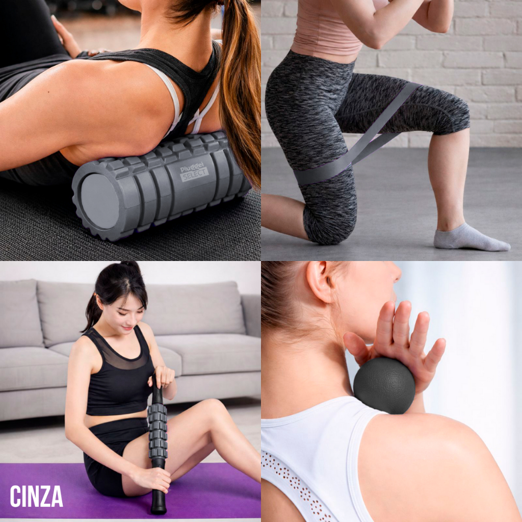 Kit Rolo + Bastão Liberacão Soltura Miofascial Massagem + Lacrosse + Band Alongamento Fisioterapia