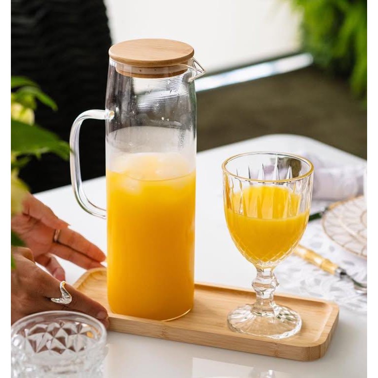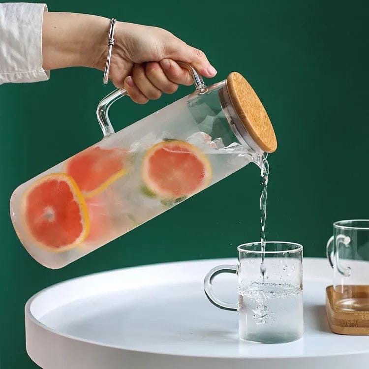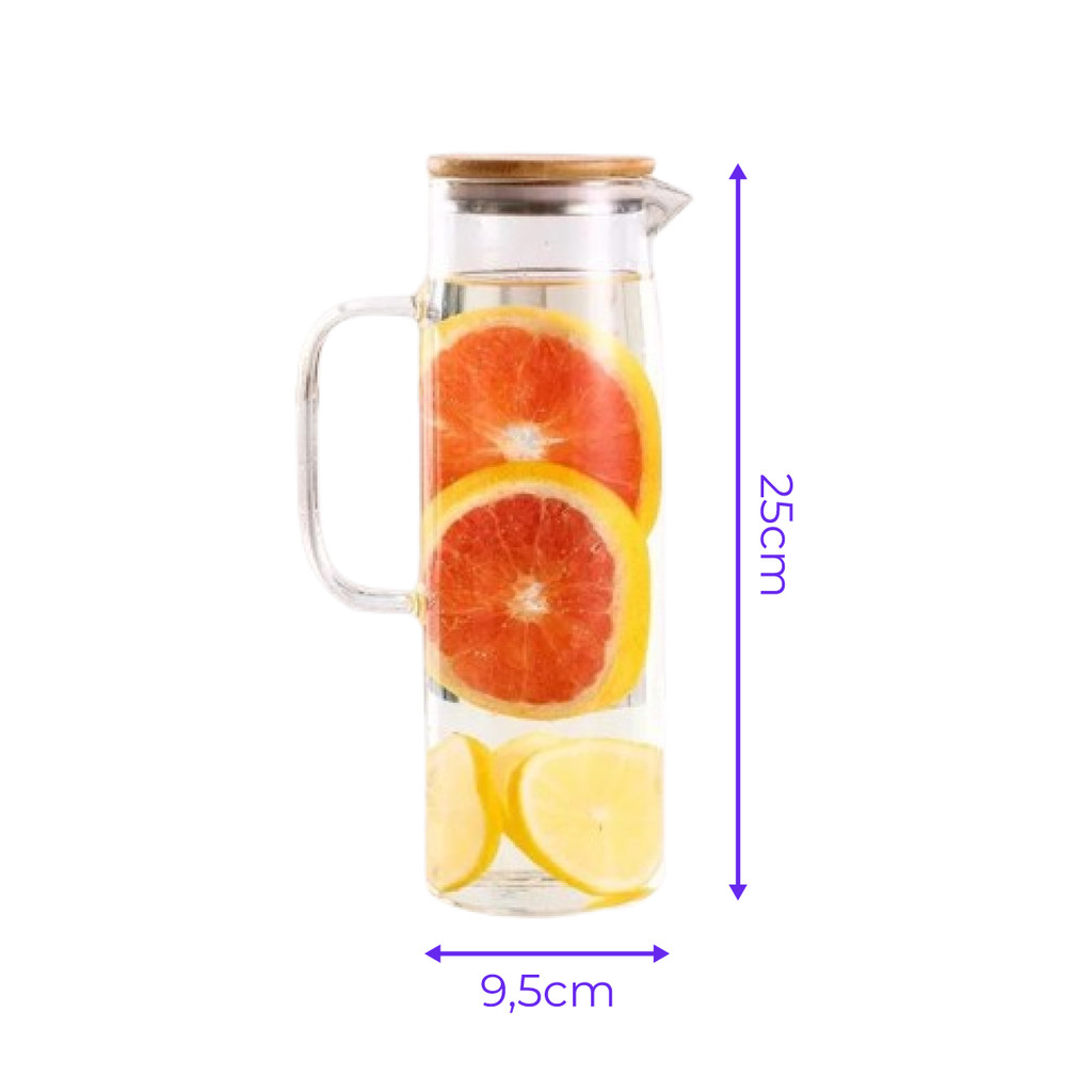 Jarra de Vidro Borossilicato c/ Vedação Tampa Bambu 1500ML