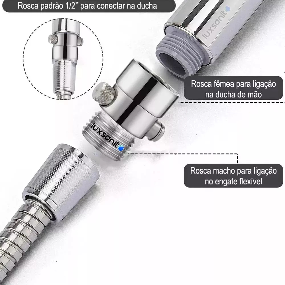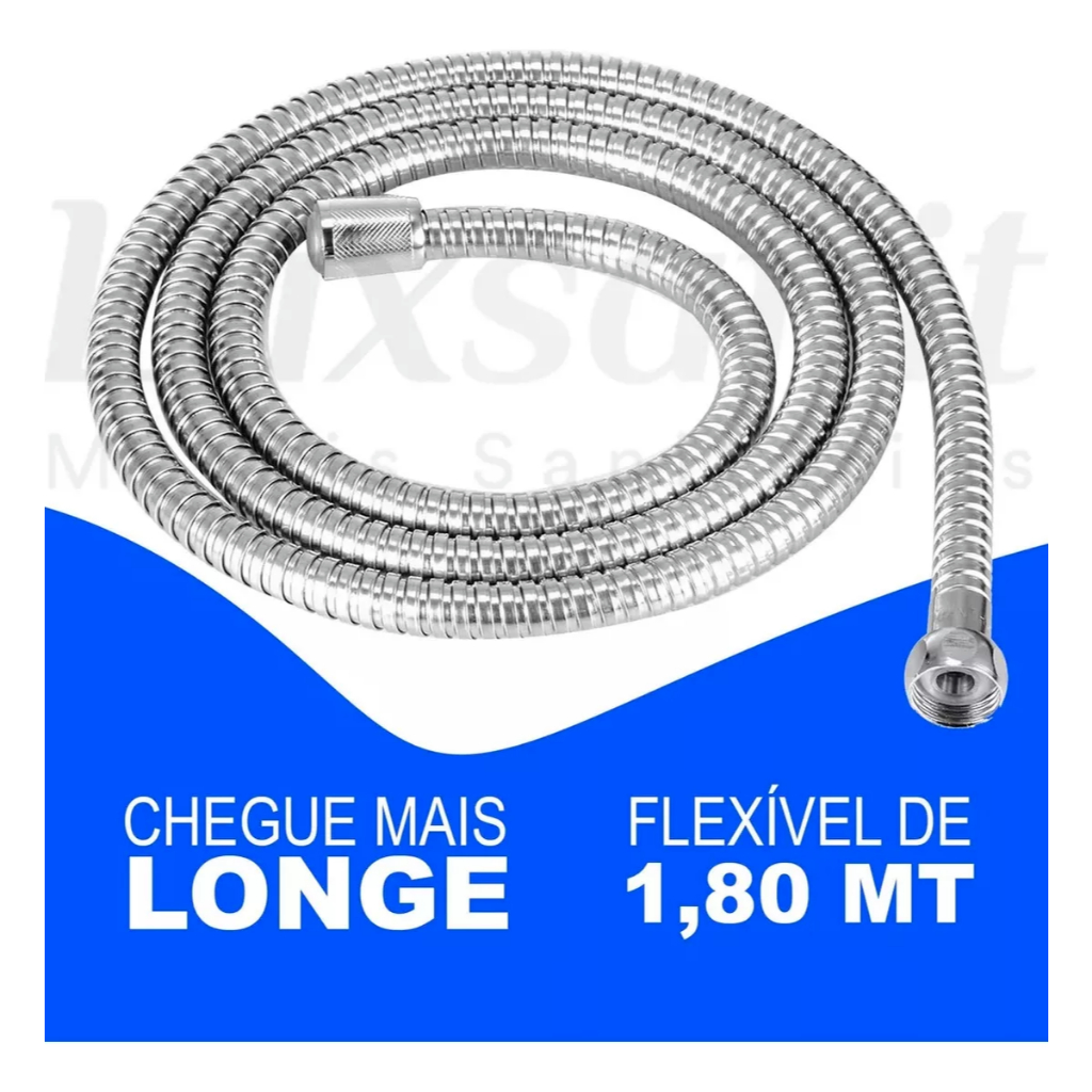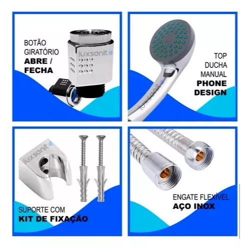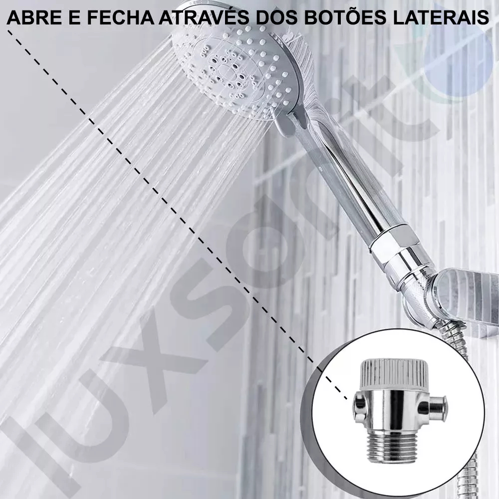 Ducha Manual C/ Mangueira Inox 1,80 Suporte Botão Abre Fecha