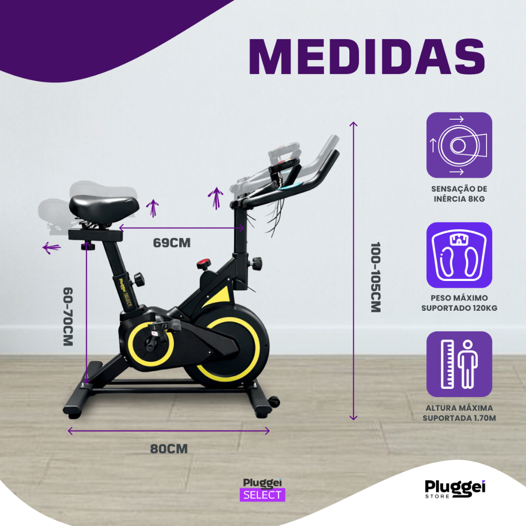 Bicicleta Spinning Magnética Ergométrica Profissional Sensação Inercia 8Kg até 120Kg Preto Branco