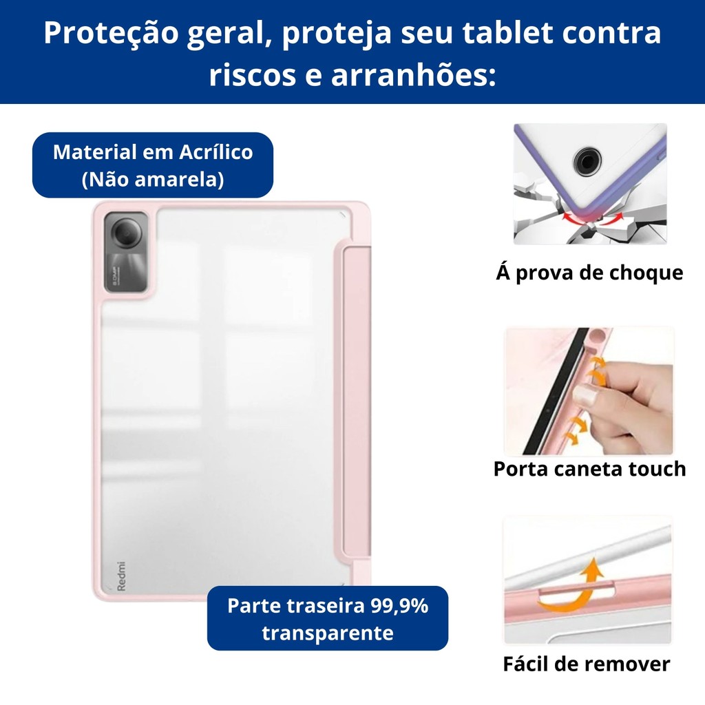 Capa Proteção Fundo Acrílico Para Redmi Pad Se +Caneta touch