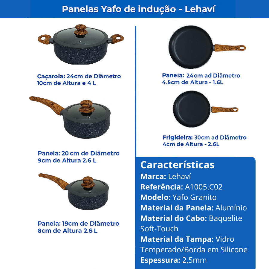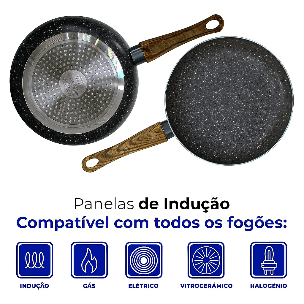 Jogo de Panelas Antiaderente Cerâmica Indução e Gás 5 Peças