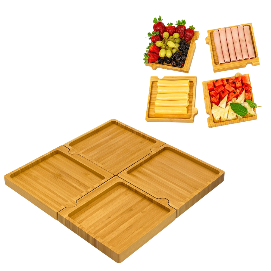 Petisqueira Quadrada Desmontável Em Bambu 4 Peças Tábua Frios