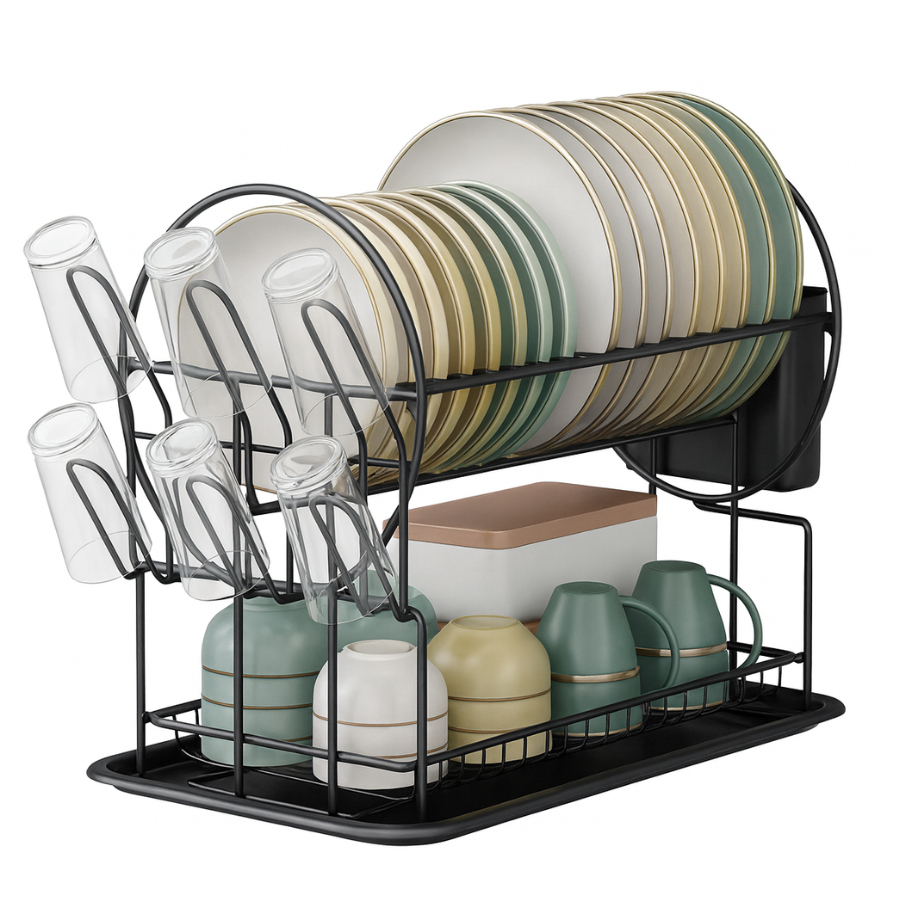 Escorredor De Louça 19 Pratos 2 Andares com Porta Copos Talheres e Bandeja