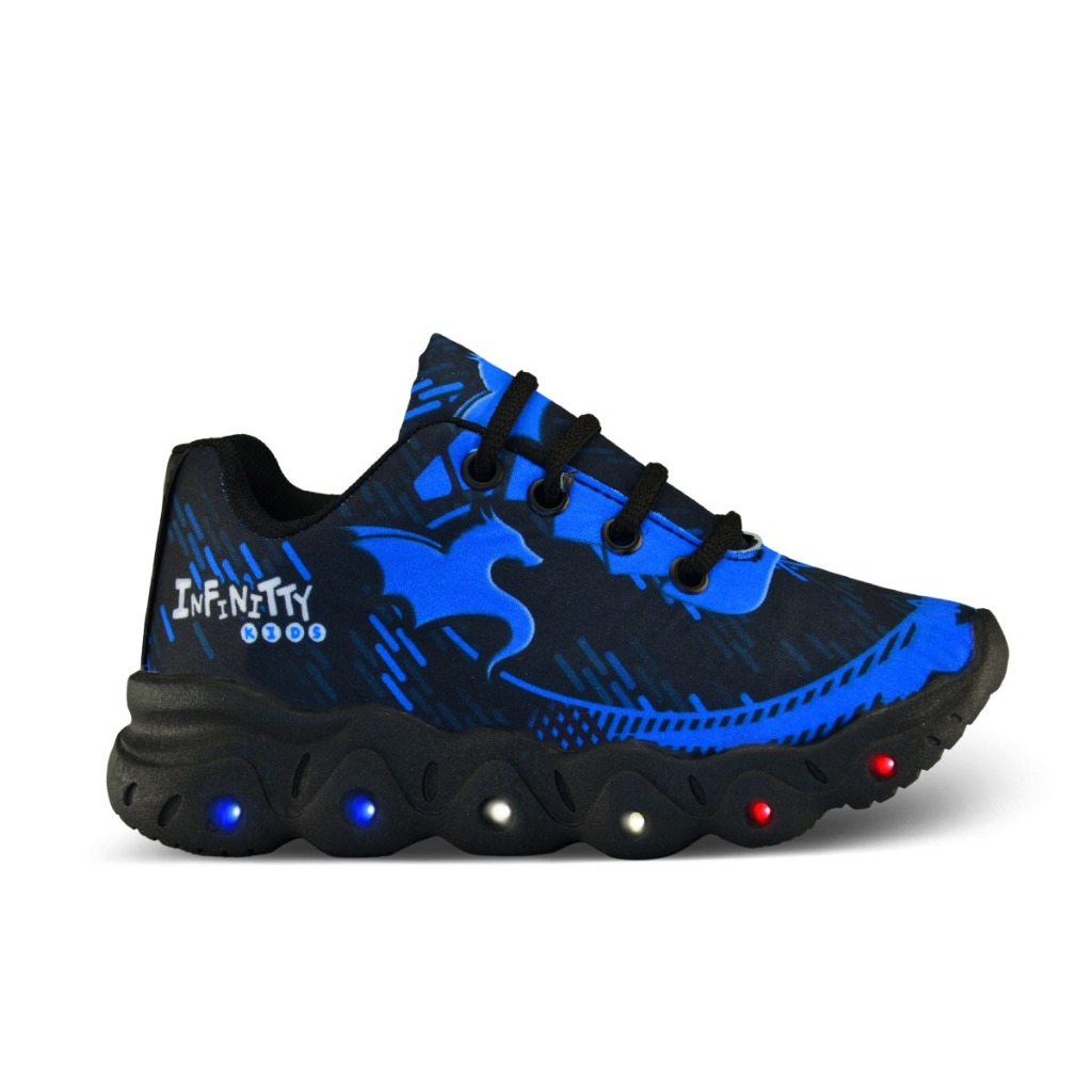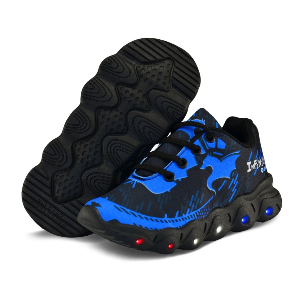 Kit Tênis Infantil De Led Casual Infinitty 02 Meninos Preto Azul + Chinelo