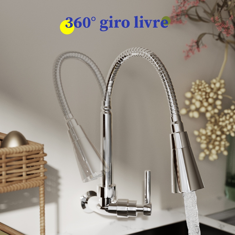 Heemli Torneira Gourmet Cozinha para Parede de Cozinha com Chuveiro Flexível 360° para Pia de Cozinha Gourmet Cromado