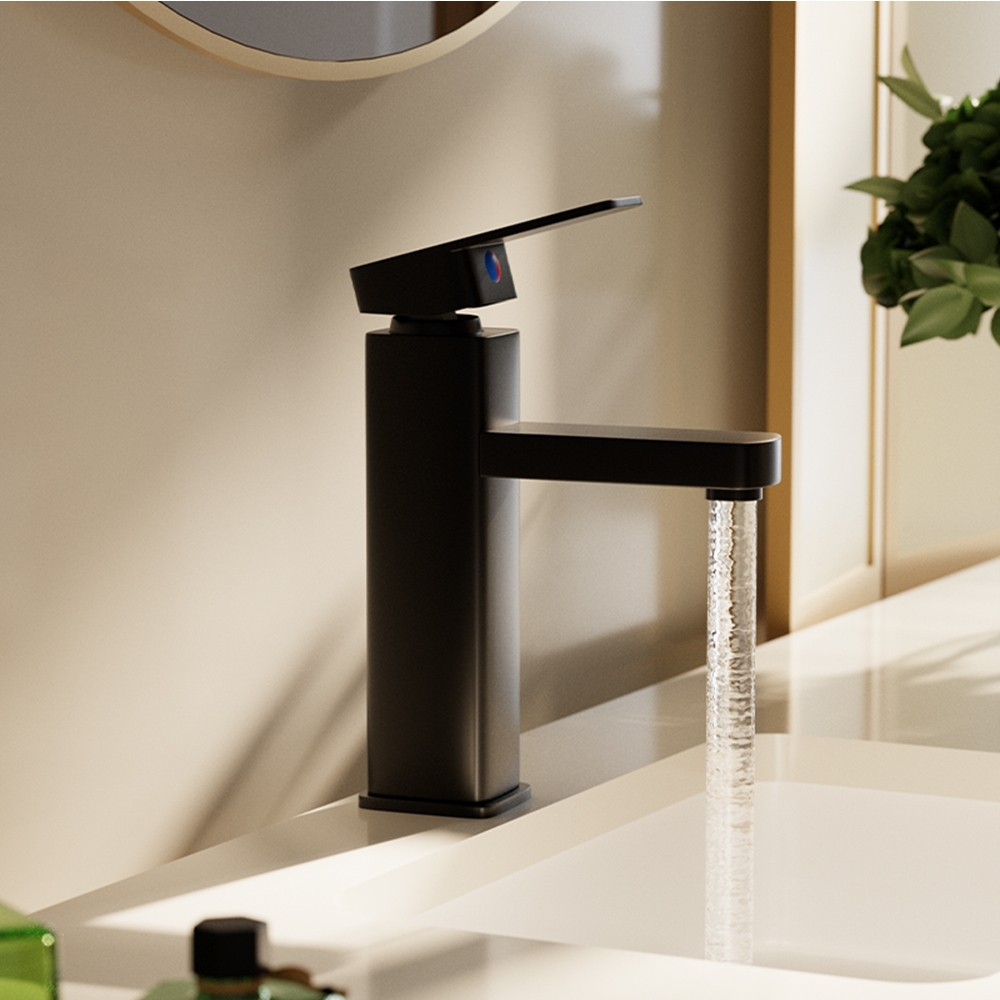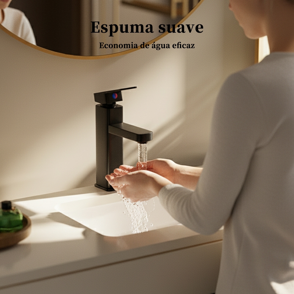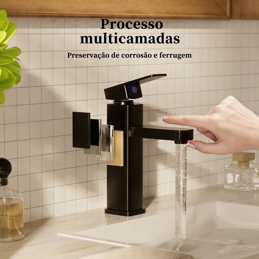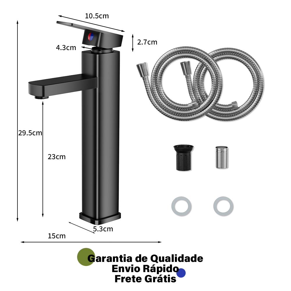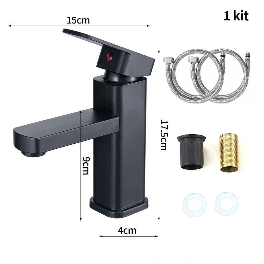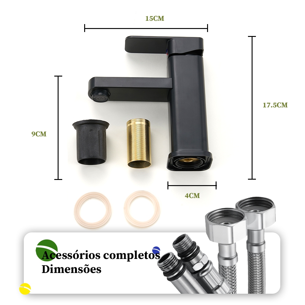 Heemli Torneira para Lavatório ABS Preto Monocomando Design Quadrado Água Fria e Quente 2 Mangueiras 60cm Inclusas