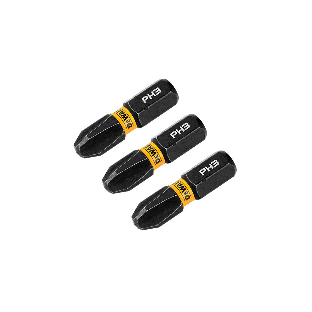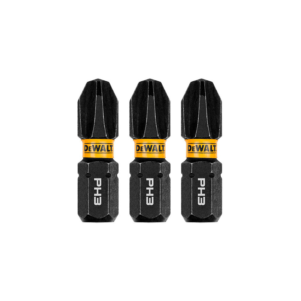 Kit com 3 Bits Phillips de Impacto PH3 x 25mm Flextorq Dewalt DWAF1PH3IR3
