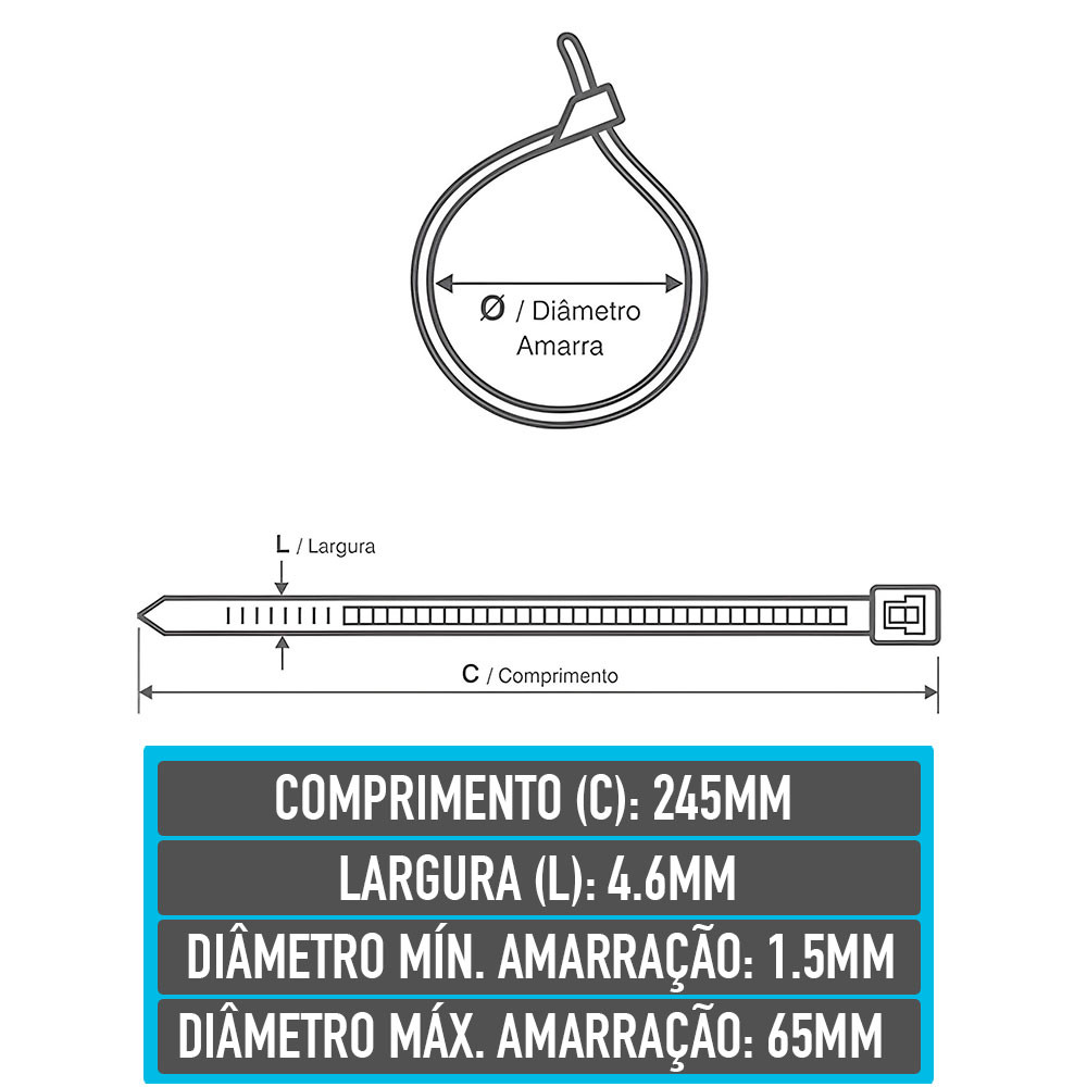Pacote com 100 Abraçadeiras de Nylon Preta 245mm x 4.6mm T50M Hellermann 111-01706