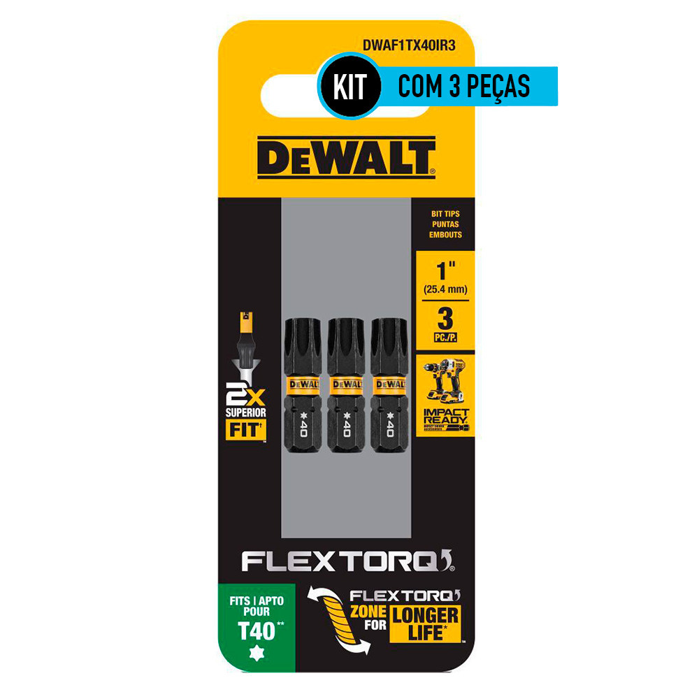 Kit com 3 Bits Torx de Impacto T40 x 25mm Flextorq Dewalt DWAF1TX40IR3