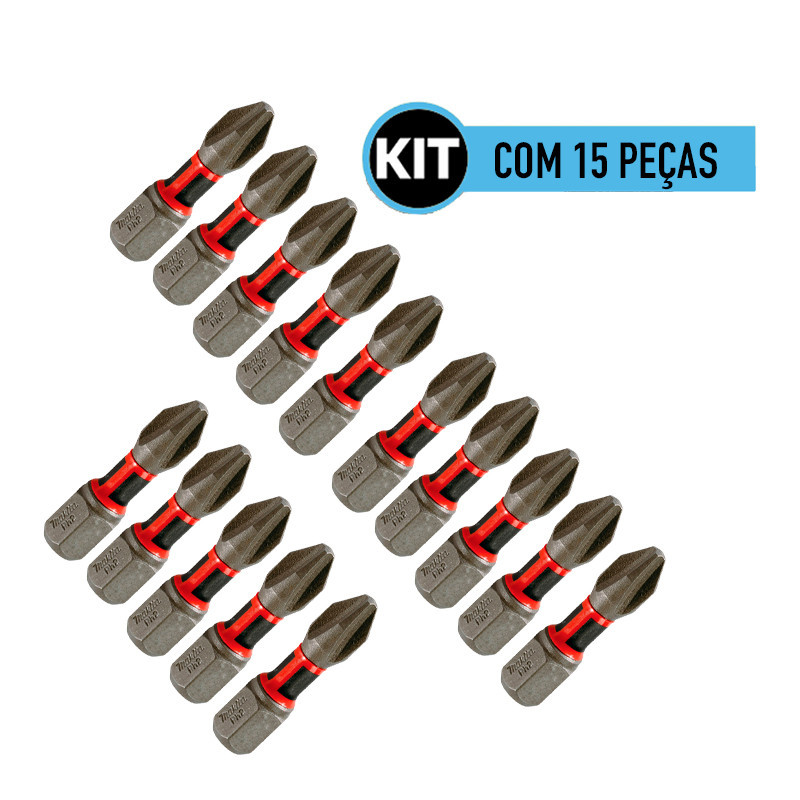 Pote C/ 15 Pecas Bits Phillips de Torcao 25mm PH2 Premier Makita E-03246
