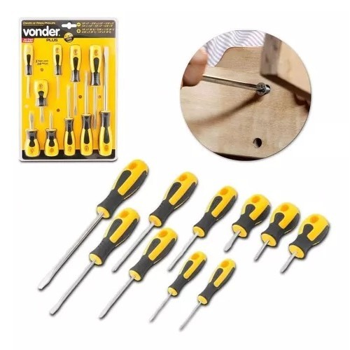 Jogo de Chave Fenda e Phillips Imantada 10 Pecas Vonder Plus - 30 72 710 000