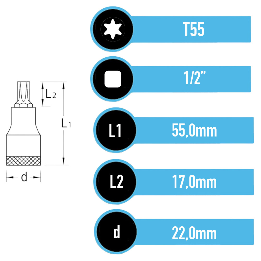 Soquete Torx Macho Encaixe 12" T55 Gedore Red R62452210 - 3300398