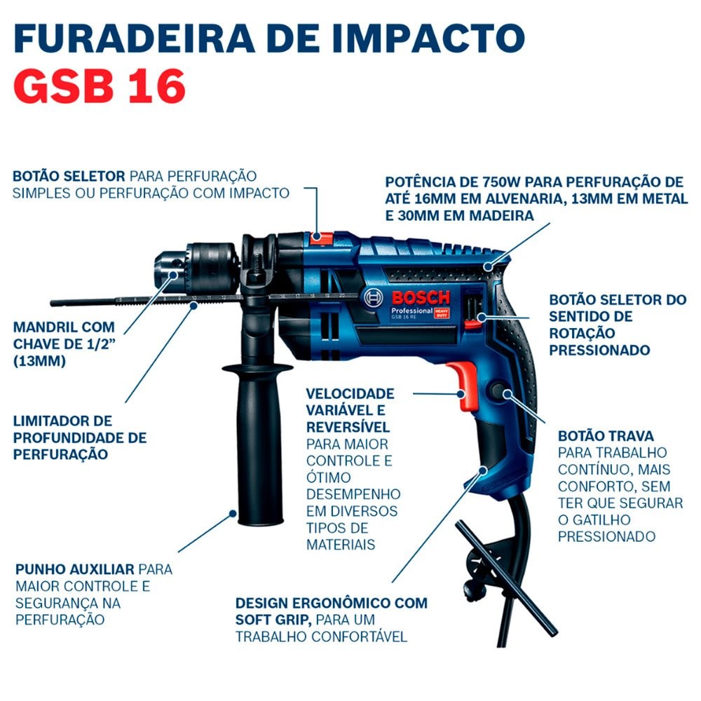 Furadeira de Impacto 12" Bosch 750w Bosch GSB 16 RE (220V)