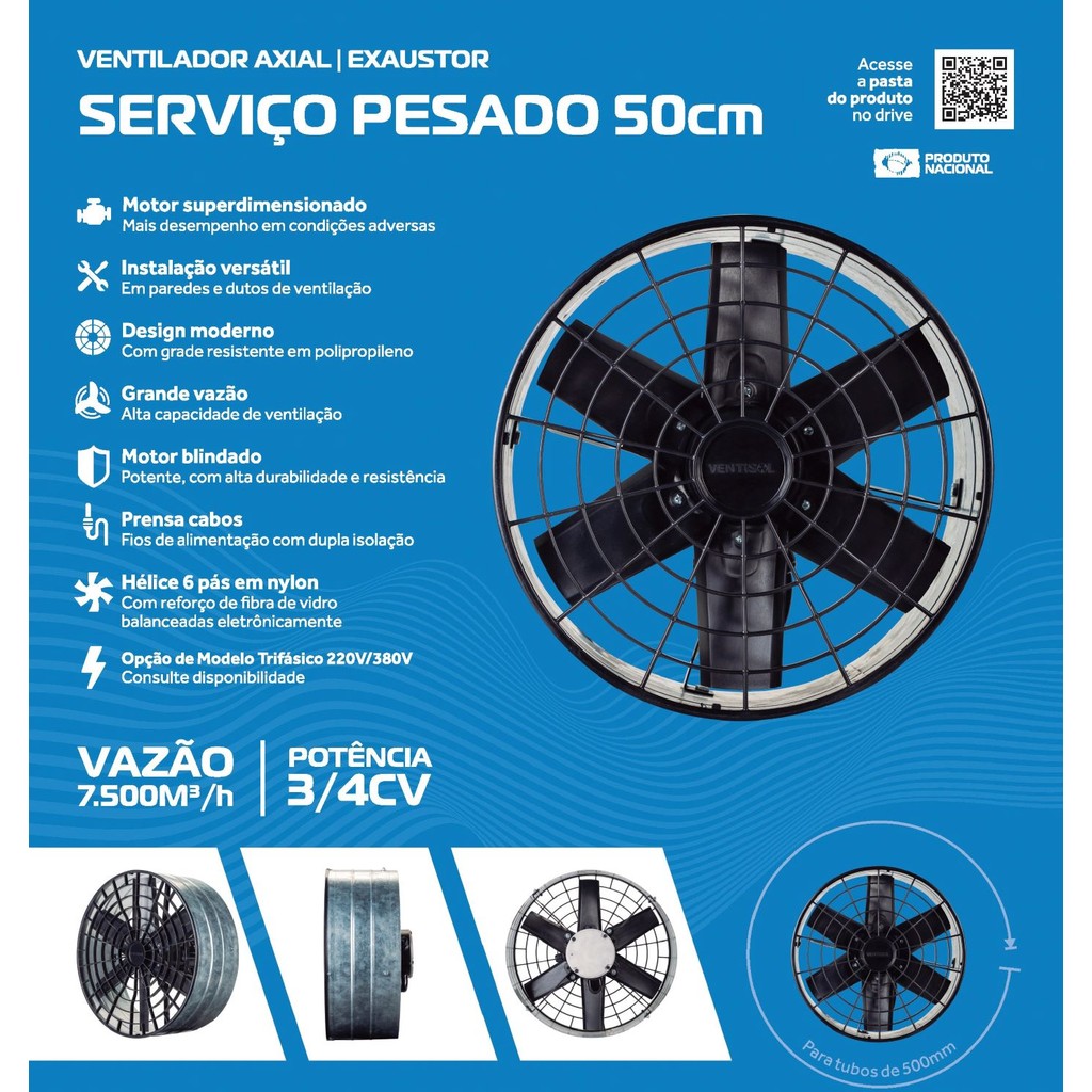 Exaustor de Parede 50cm Linha Pesada Industrial Monofásico Ventisol (220V)