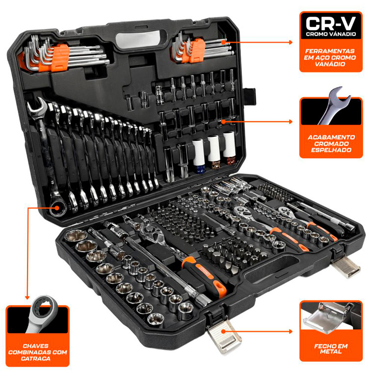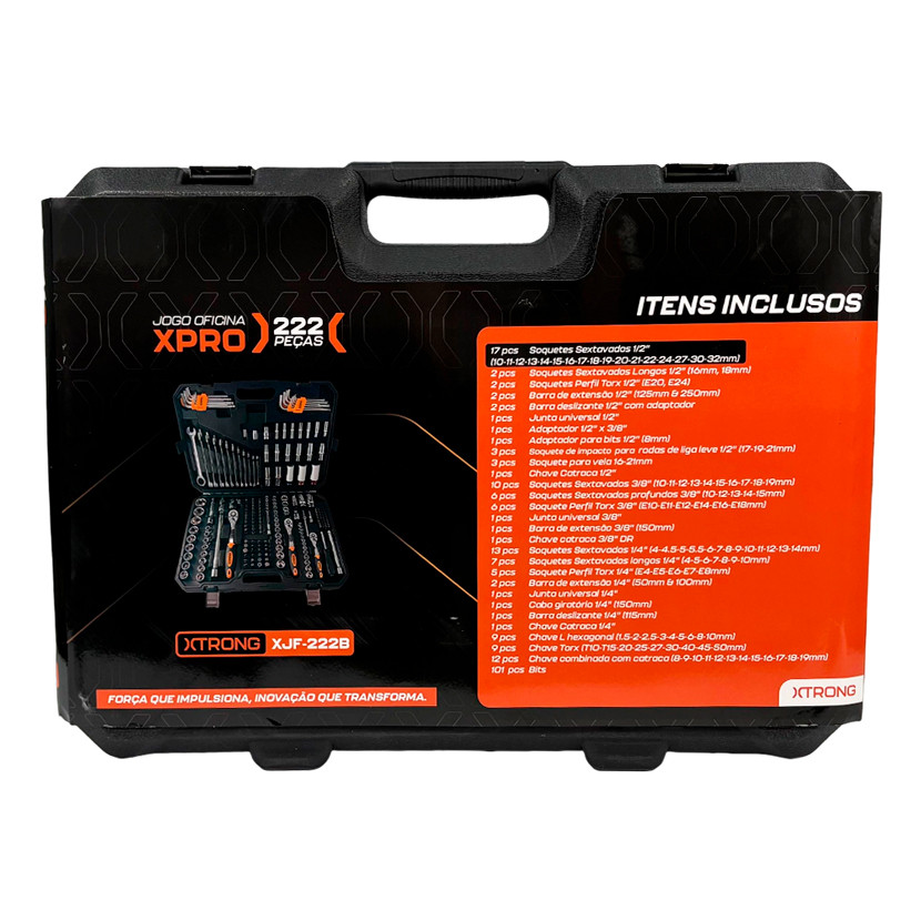 Jogo de Ferramentas Oficina XPRO 14", 516", 38" e 12" com Maleta 222 Peças XTRONG XJF-222B