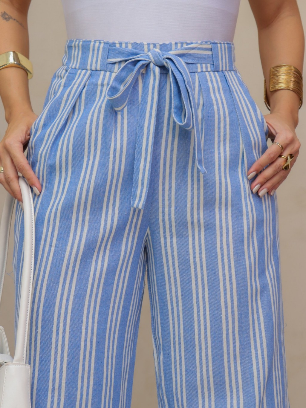 Calças listradas casuais femininas 240026-1