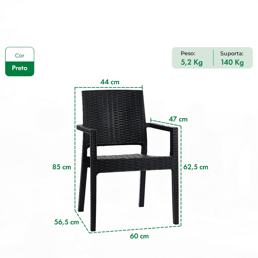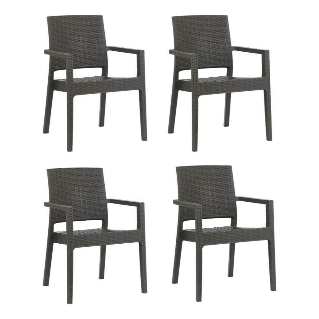 Kit 4 Cadeiras Com Braço Milano Rattan Fibra Sintética