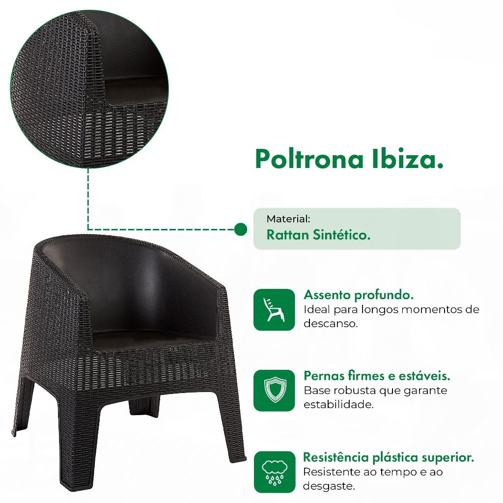 Conjunto 2 Poltronas Ibiza + Mesa Capri Rattan