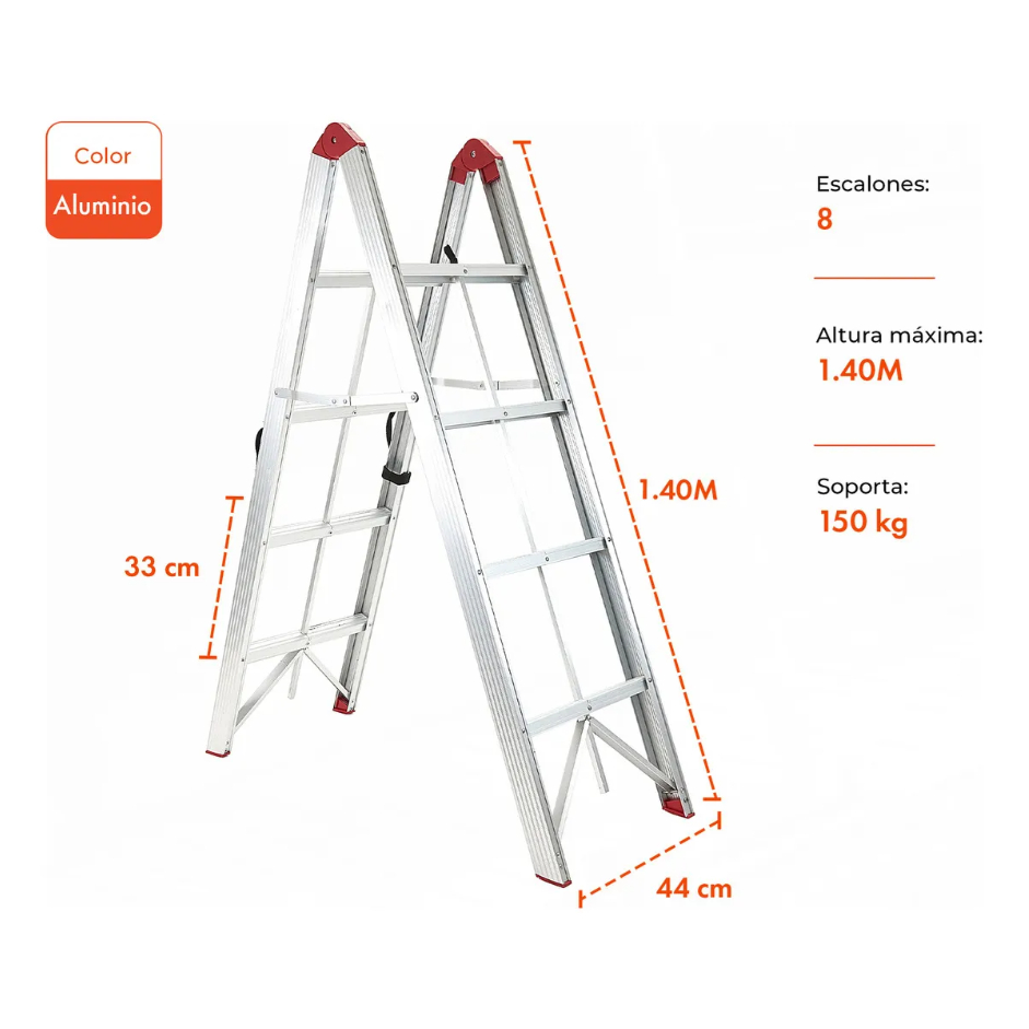 Escada De Alumínio 8 Degraus Ultra Compacta Palito Dobrável Gardenlife