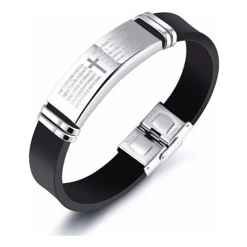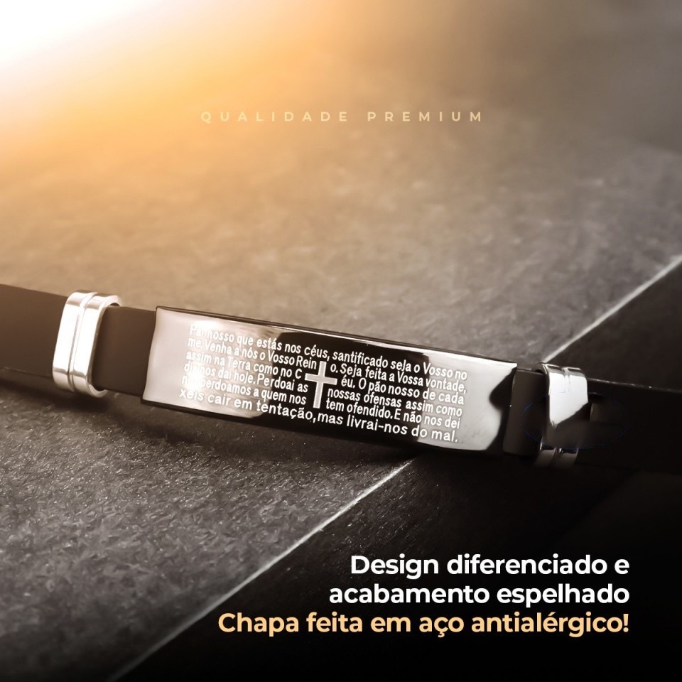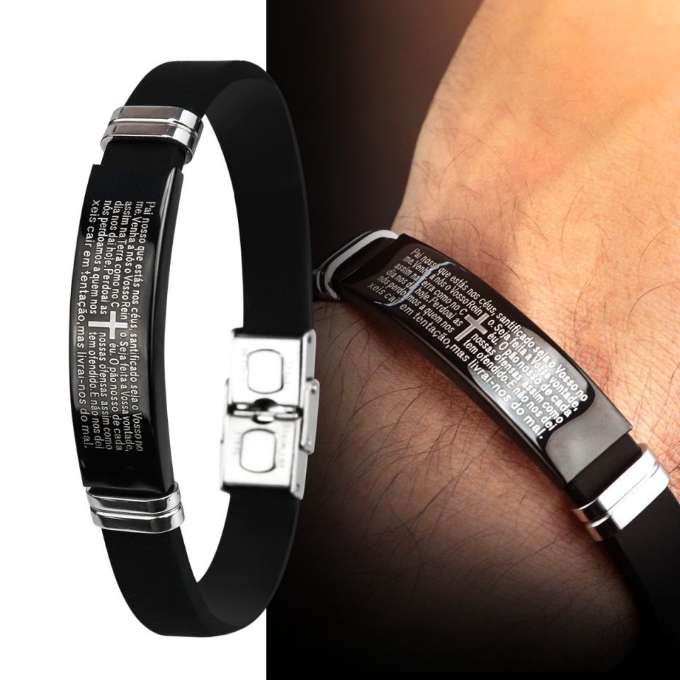 Pulseira masculina ajustavel Pai nosso Borracha resistente Preta PMPN9