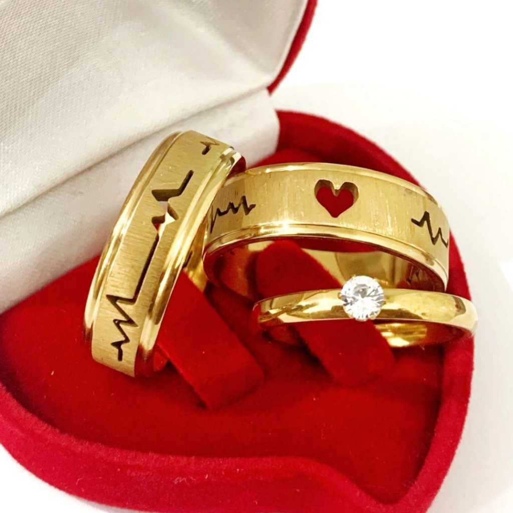 1 par Aliança 6mm de Casamento Moeda Antiga Banhada a Ouro 18k Coração VazadoBatimentos Cardíacos + caixa Namoro Coração