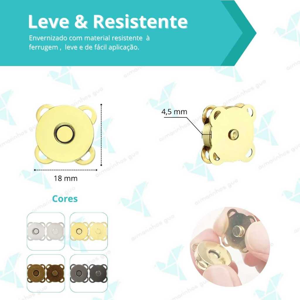 BOTÃO IMÃ MAGNÉTICO IMANTADO FORTE COSTURÁVEL 18MM 10 UND LATONADO