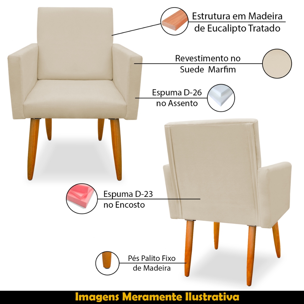 Envio Imediato - Cadeira Poltrona Decorativa Nina Pé Palito Suede - LR DECOR