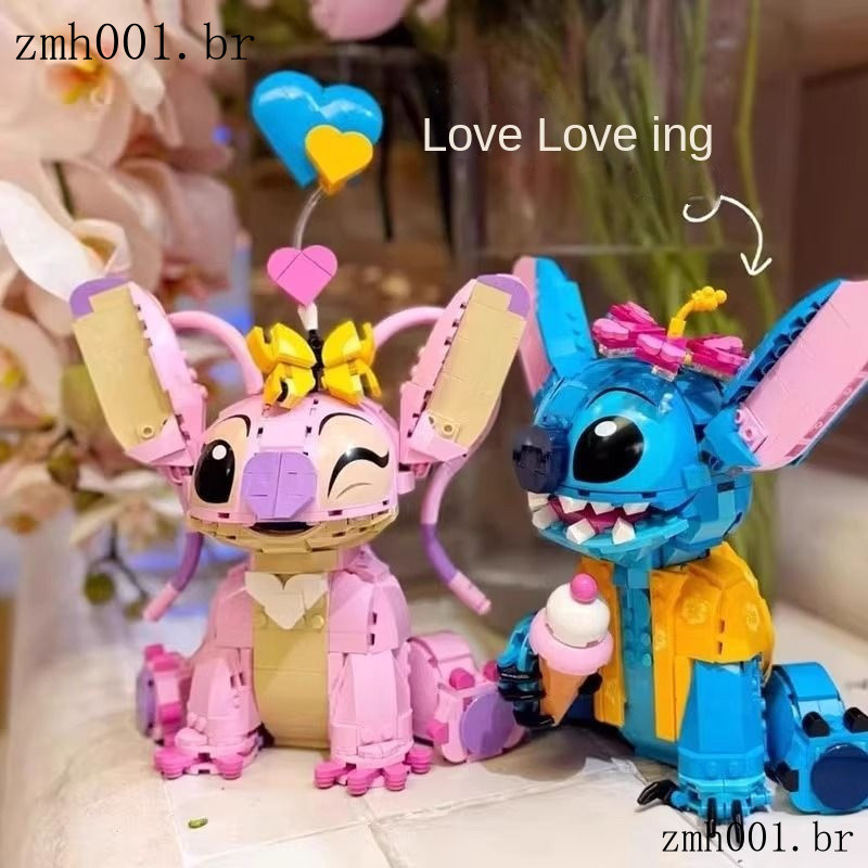 Conjunto De Casal Disney 43257 Angel E 43249 Stitch CP Para Montar Brinquedos De Blocos De Construção