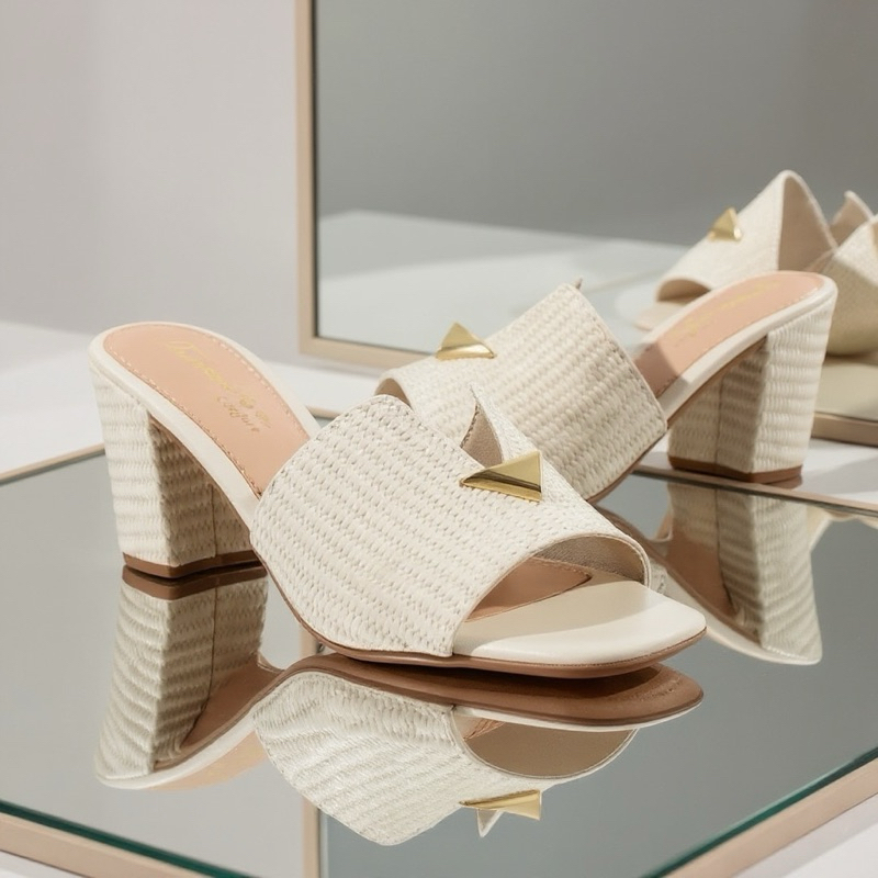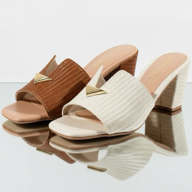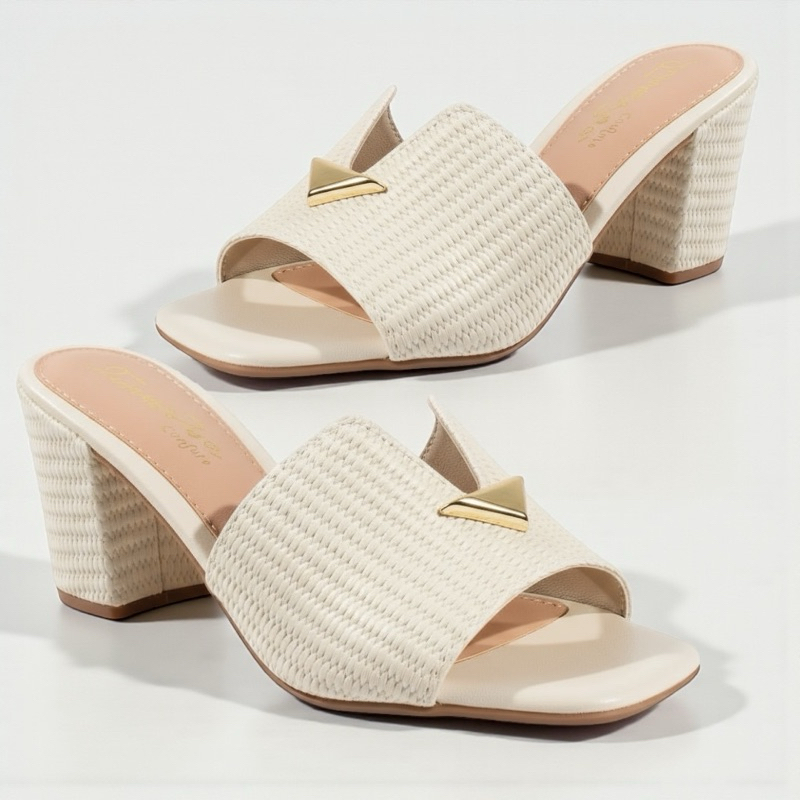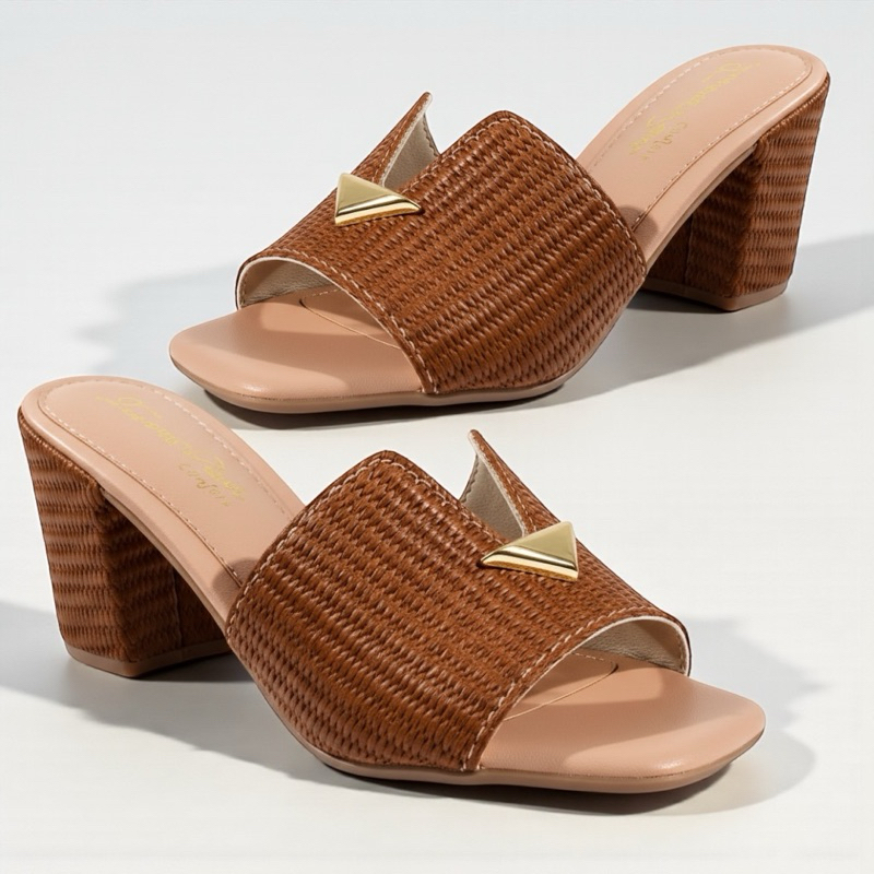Tamanco Feminino Salto Bloco Confortável – Sandália Trançada com Detalhe Dourado Luxo | Estilo e Elegância