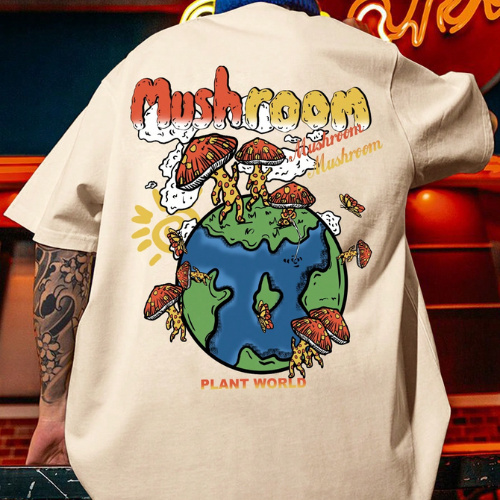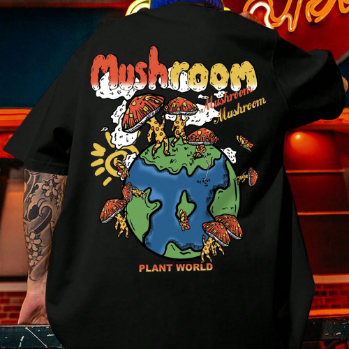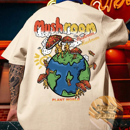 Camiseta Masculina Planeta Cogumelo Unissex Algodão Streetwear Premium Plus Size - Envio Imediato