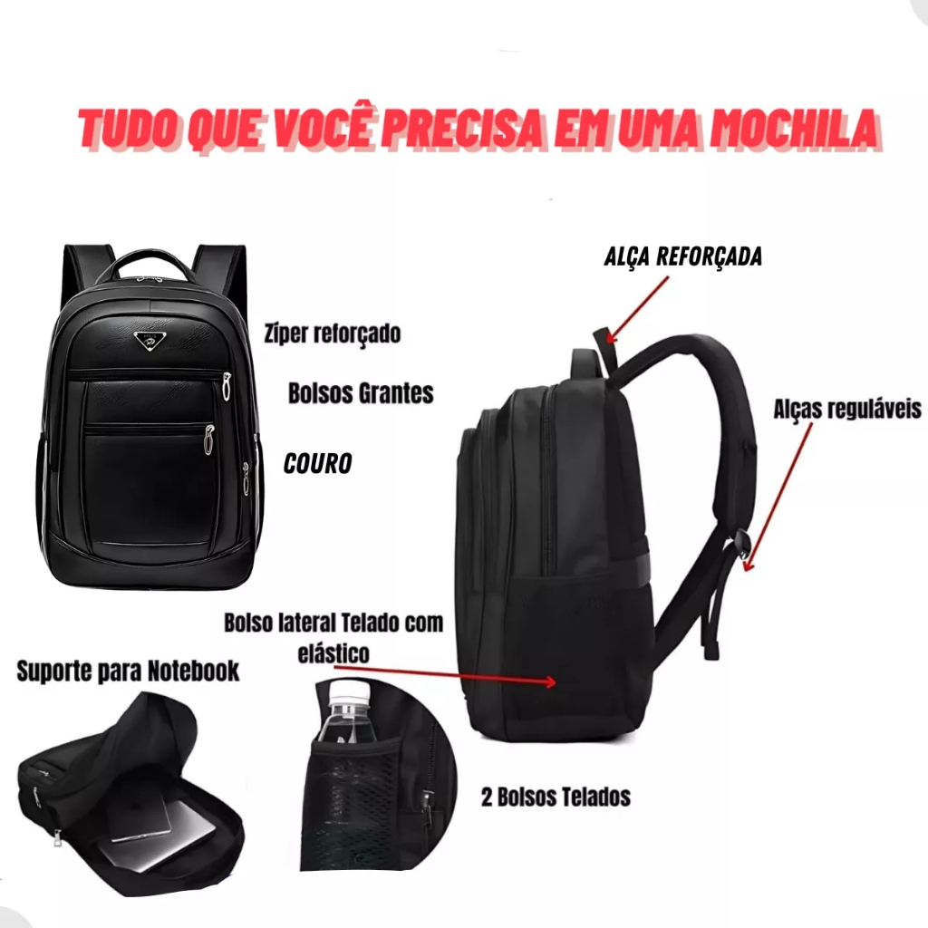 Mochila Masculina Couro Resistente Impermeável Reforçada