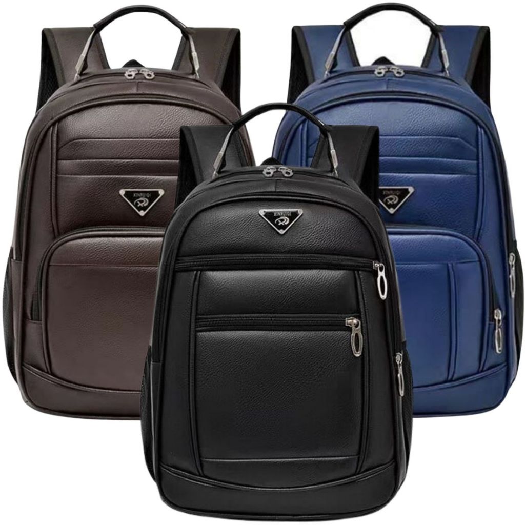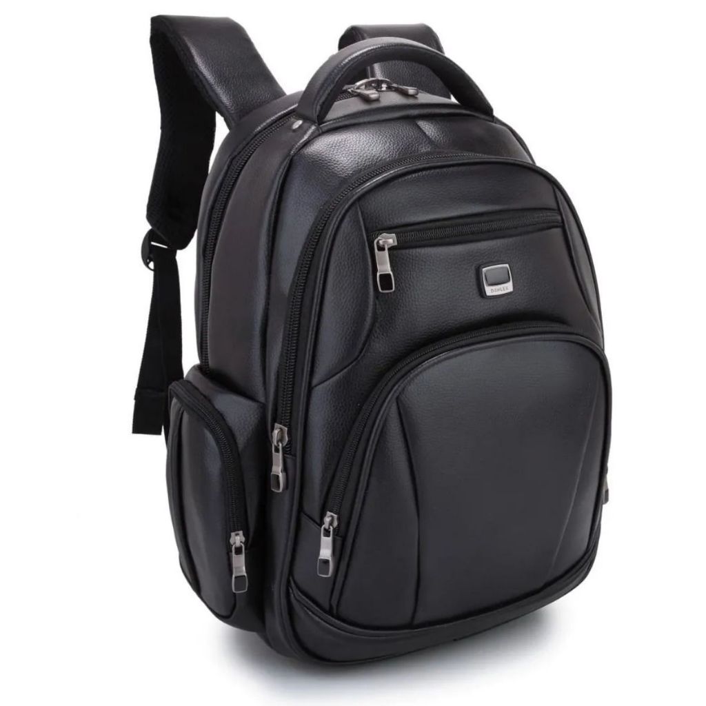 Mochila De Couro Grande Média Impermeável Trabalho Faculdade Preta