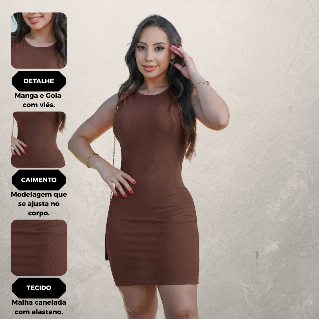 Vestido Feminino Tubinho Tecido Malha Canelado Sem Manga Curto Casual Premium Moda Gringa