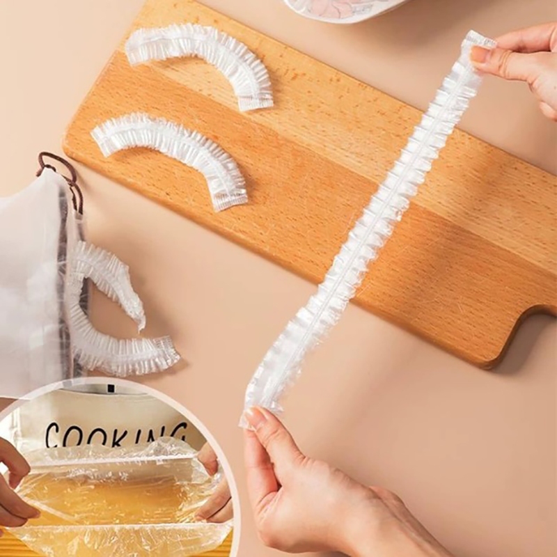 Sacos de Filme Plástico Adesivo Descartáveis - Nível Alimentar! Com Boca Elástica Tipo Chapéu de Banho. Ideal para Cober