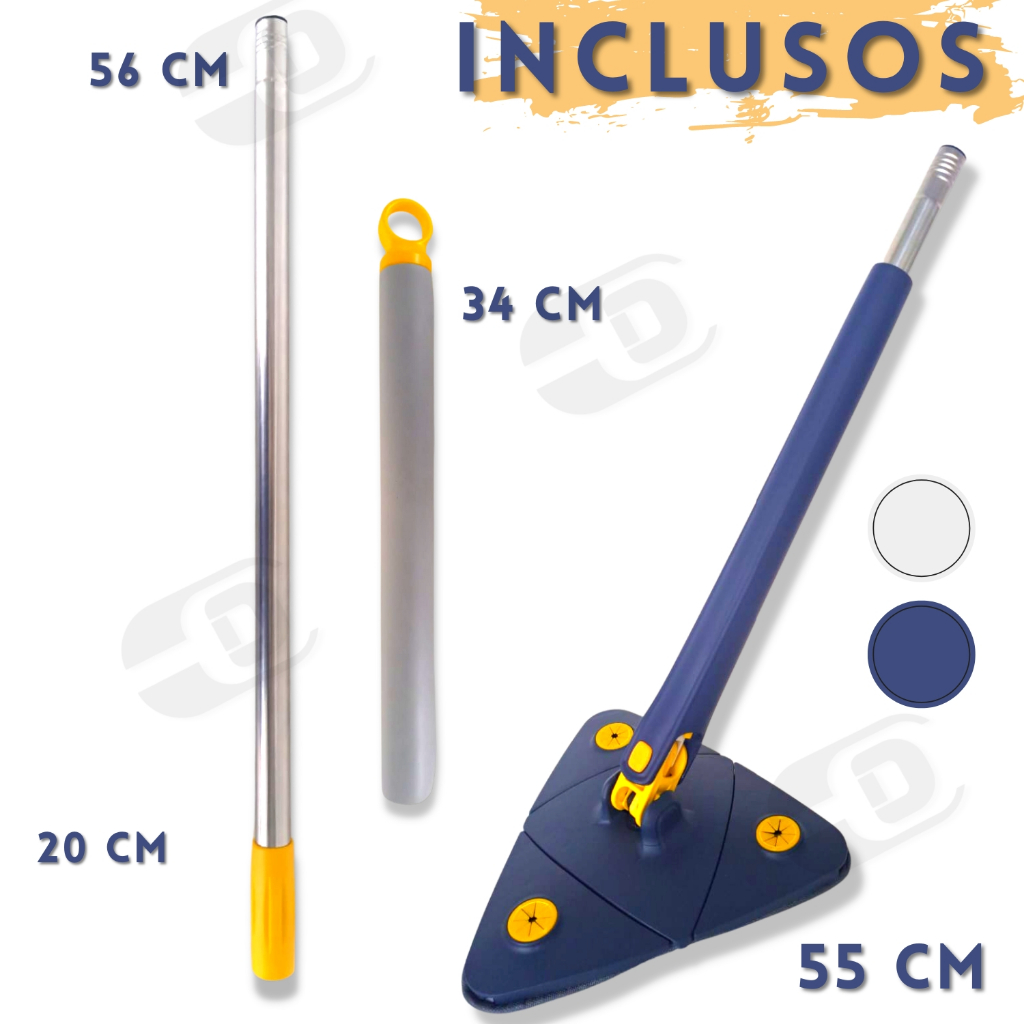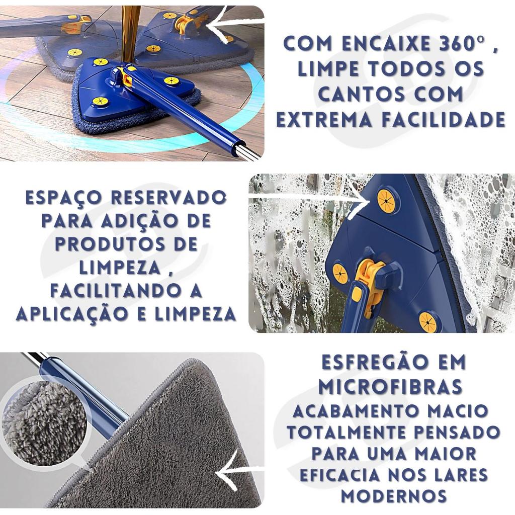 Esfregão Mop Triangulo Ajustável Giratório 360° Multiuso 2 Refil Rodo de Limpeza