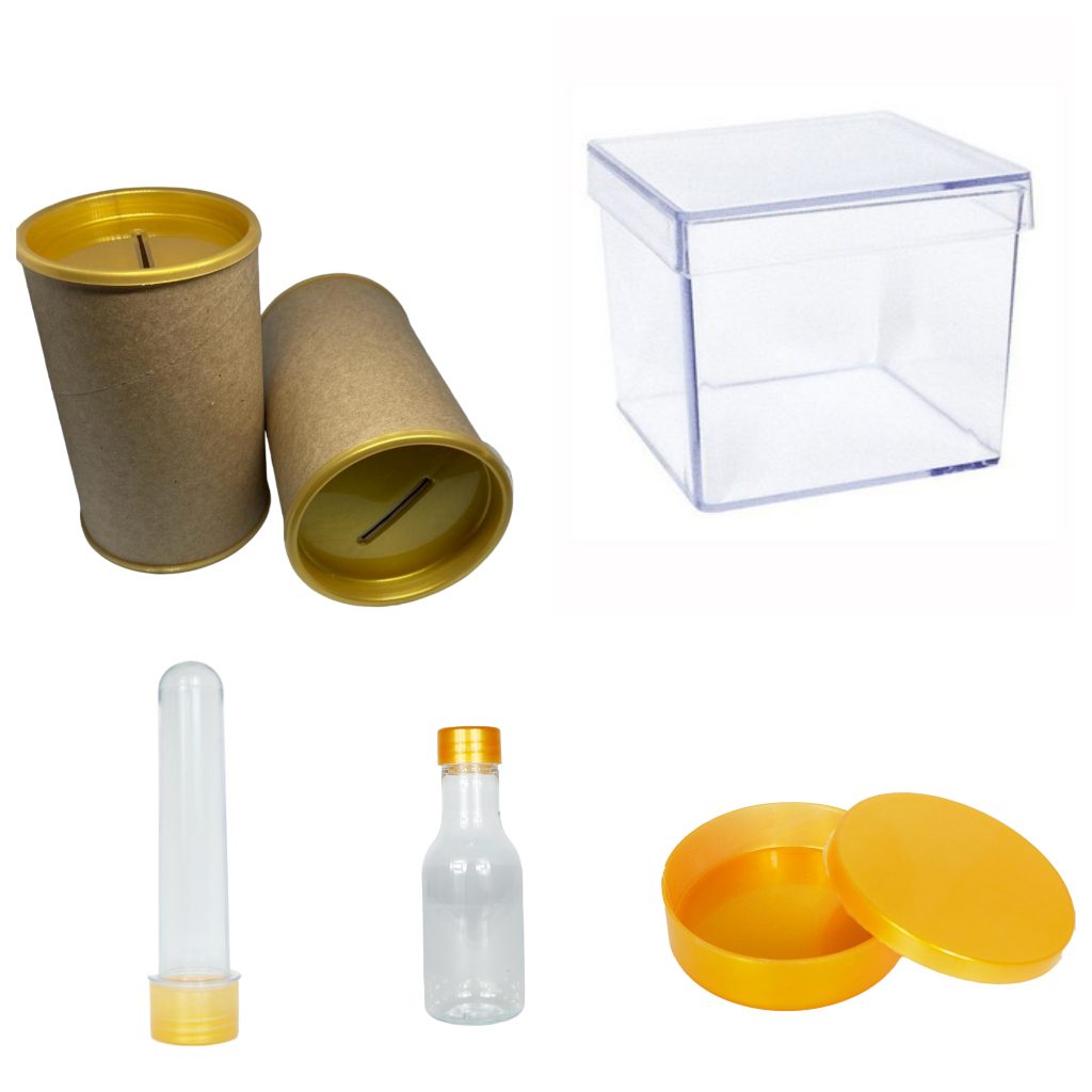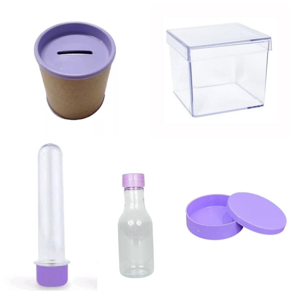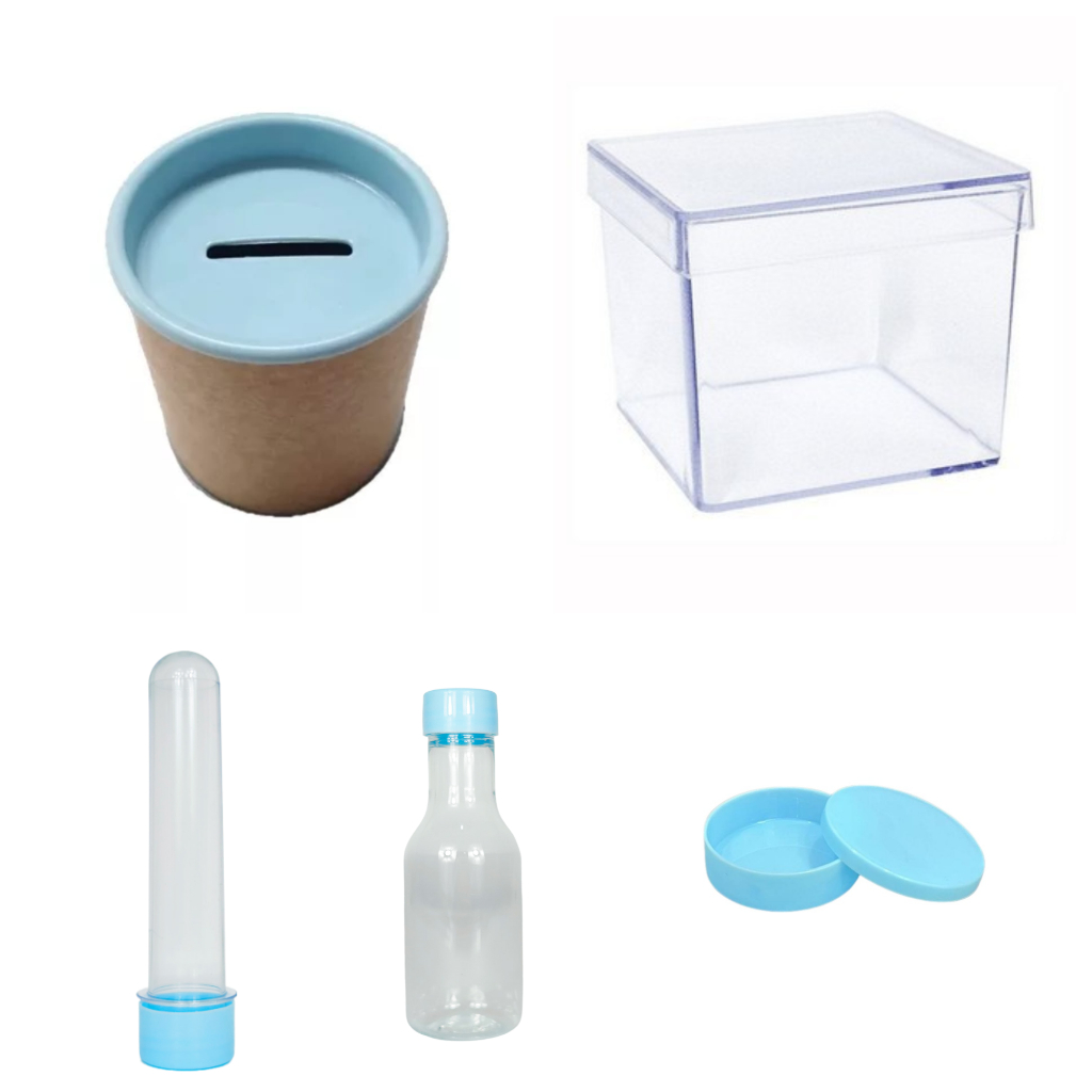 Kit 75 itens - 15 latinha 15 Cofre 10x6 15 Tubetes 13 +15 Caixinha 5x5 + 15 garrafinha- Lembrancinha