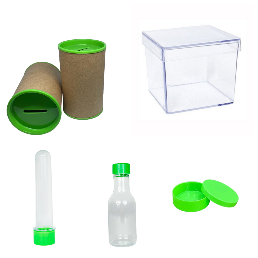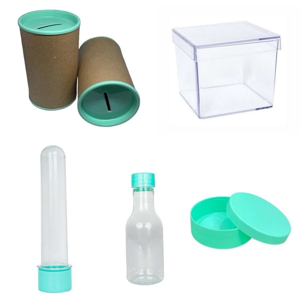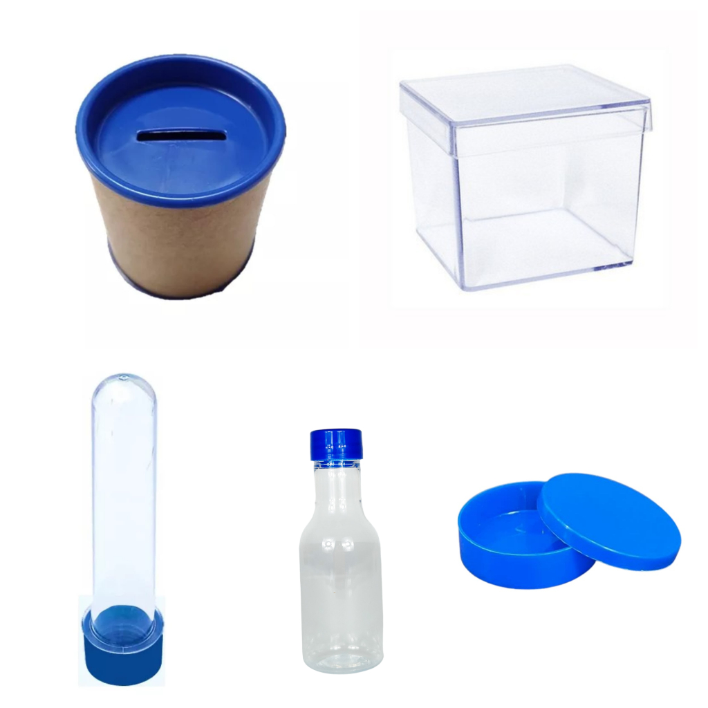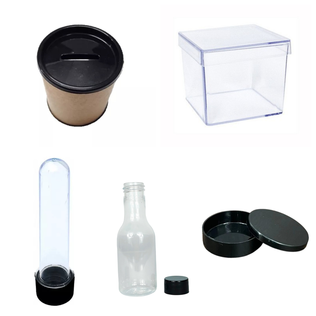 Kit 75 itens - 15 latinha 15 Cofre 10x6 15 Tubetes 13 +15 Caixinha 5x5 + 15 garrafinha- Lembrancinha