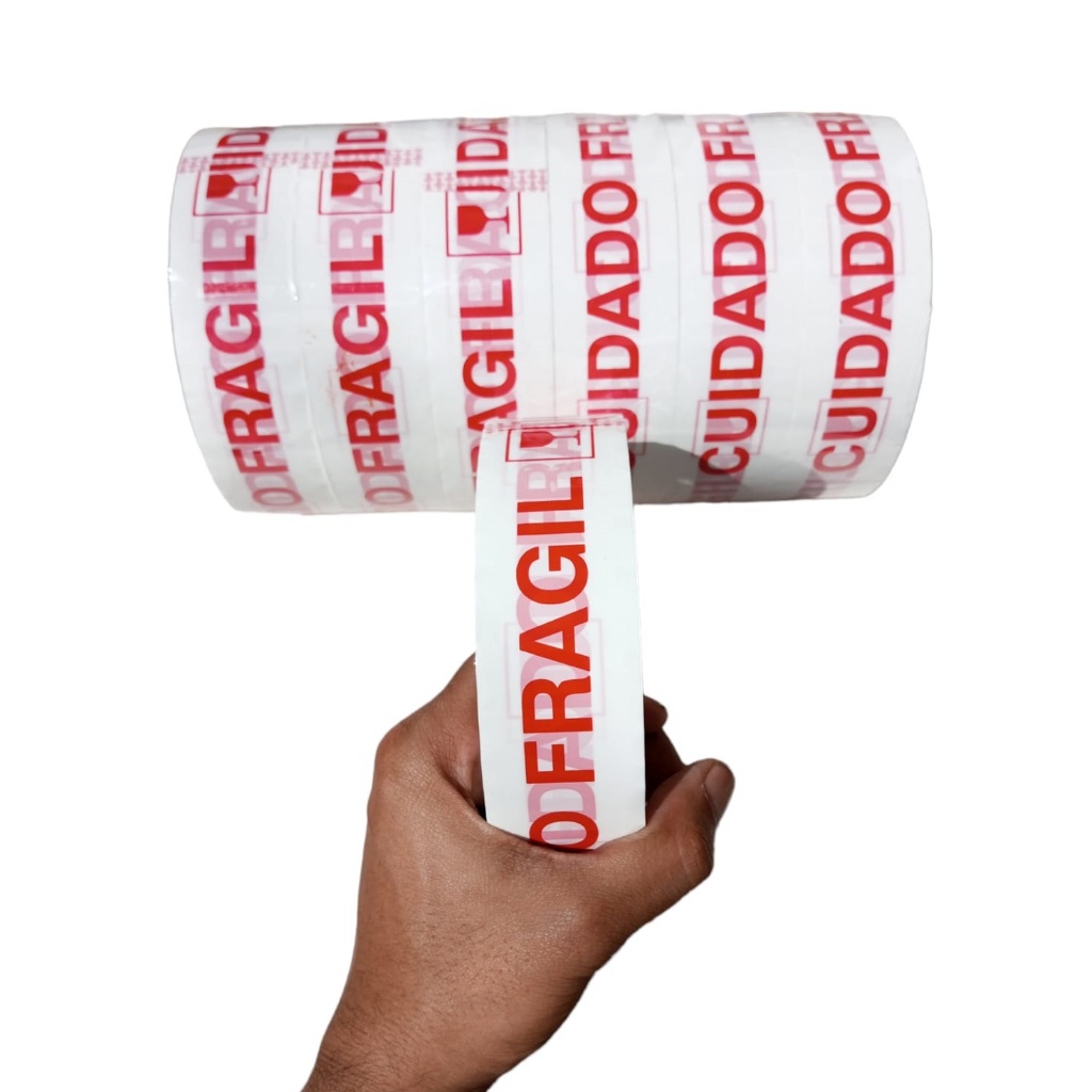 Kit 2 Fitas Adesivas Durex Larga 500m Cuidado Frágil Grande Embalar Caixas e Encomendas