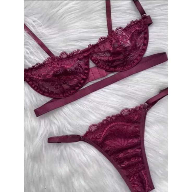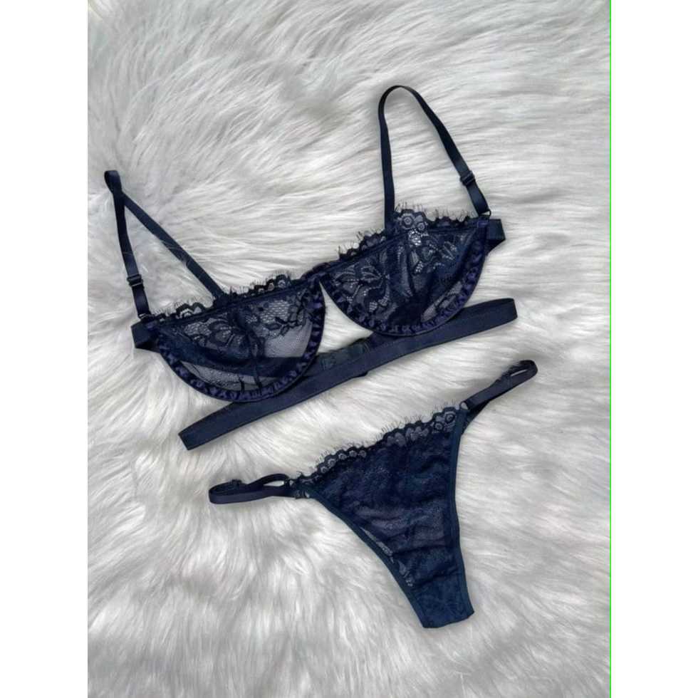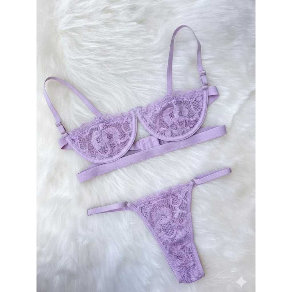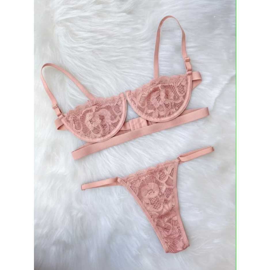 Conjunto gringa lingerie meia taça com aro sutiã e calcinha renda com regulagem nas alças