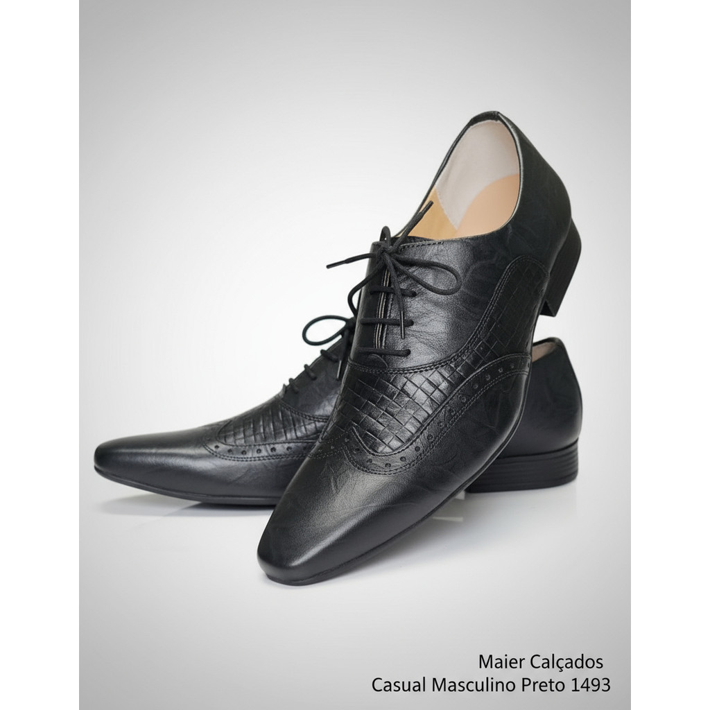 Sapato Casual Masculino Couro Legítimo Bico Fino Preto Confortável Resistente Maier Calçados