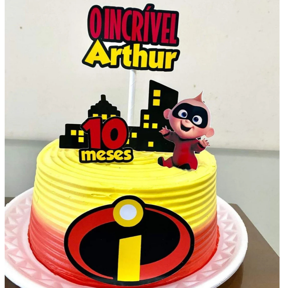 Topo Topper de Bolo Tema Personalizado Os Incríveis
