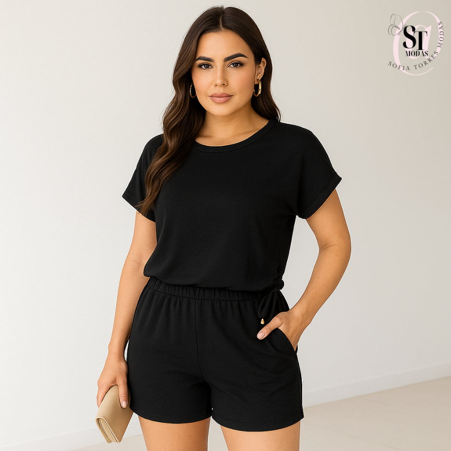 Conjunto Feminino Short e Blusa com Amarração Manga Curta Casual Confortável Verão 2026 Carnaval