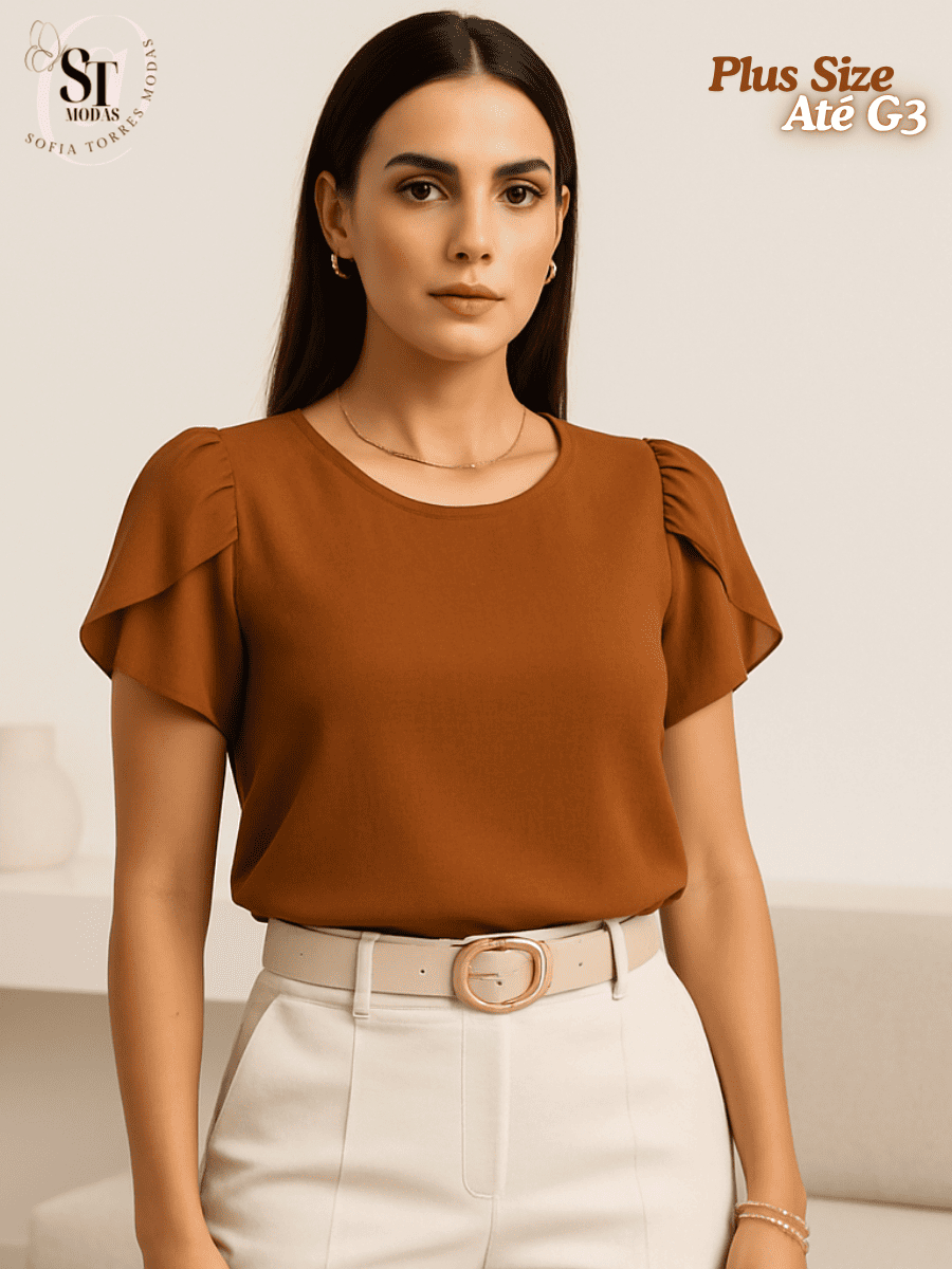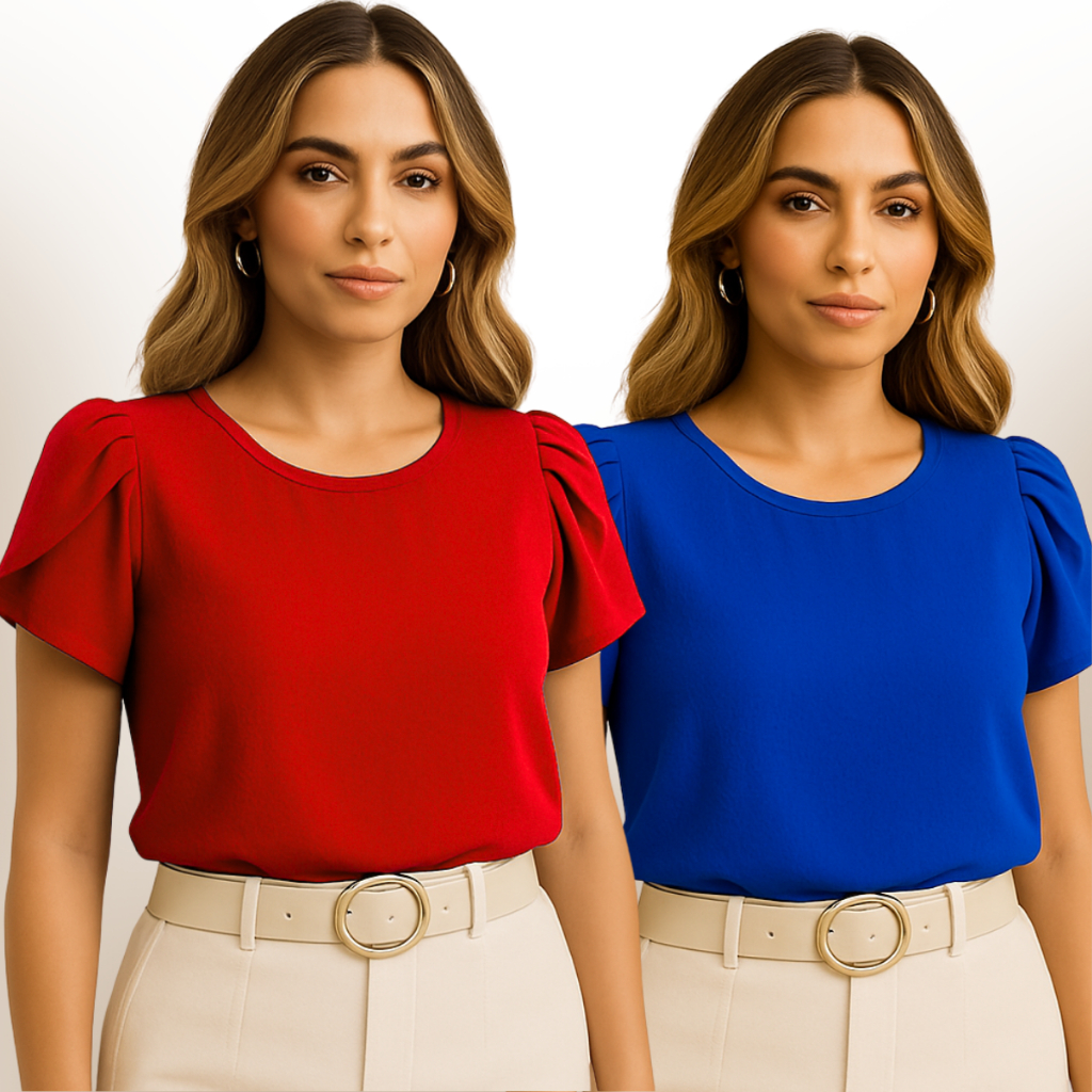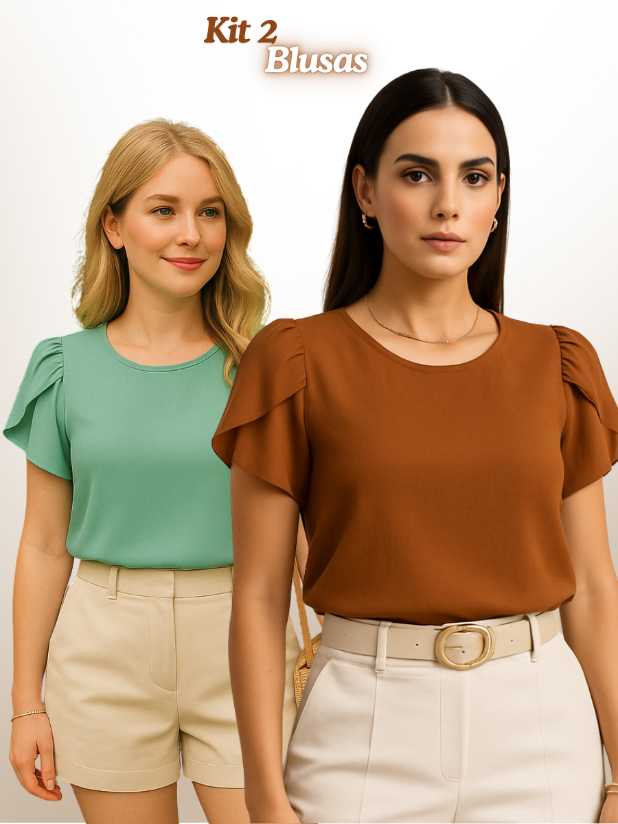 Blusa Feminina Plus Size Kit com 2 Blusas Social Manga Curta Princesa Elegante Duna GG G1 G2 G3