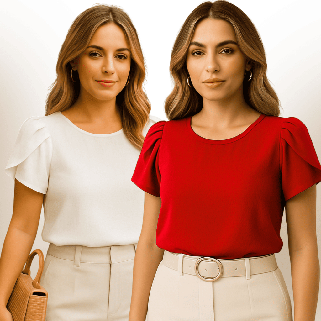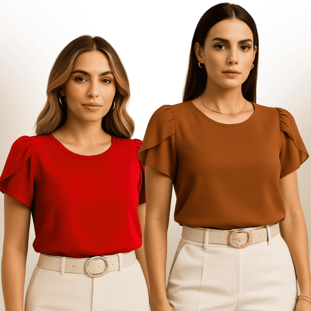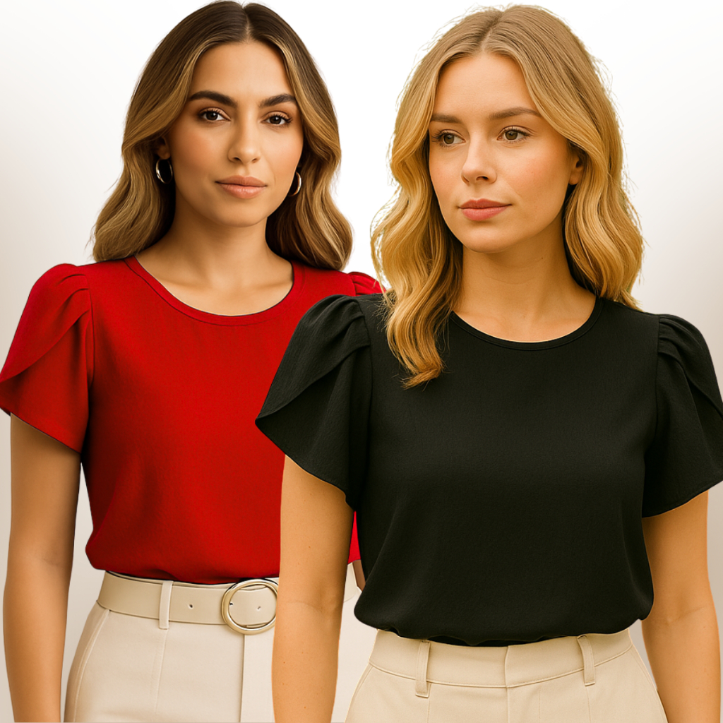 Blusa Feminina Plus Size Kit com 2 Blusas Social Manga Curta Princesa Elegante Duna GG G1 G2 G3