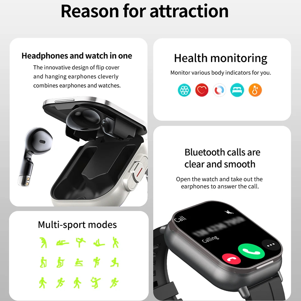 Smartwatch Earbuds 2 Em 1 Sem Fio Bluetooth TWS Chamada De Fone À Prova D'água Pressão Arterial Homens Mulheres Presente